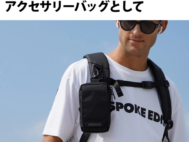 ストラップでショルダーバックとして、ベルトに通してウェストポーチとして、またバックパック用のサイドポーチとして。