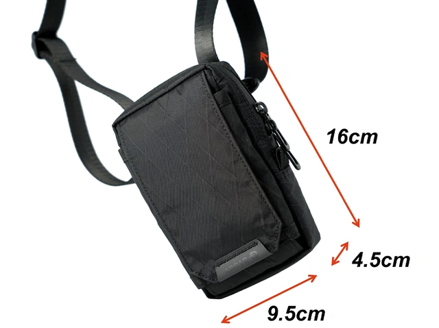 本体:9.5cm x 16cm x 4.5cmストラップ:幅2.5cm 重さ100g