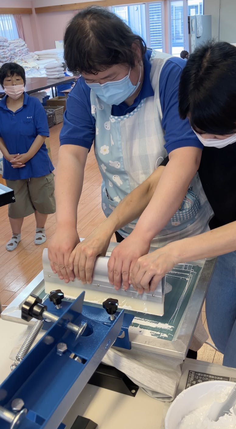 印刷の仕事は、施設の利用者さんたちにとっても新しく楽しいもののようで、「やってみたい」という利用者さんの列ができたのでした。