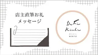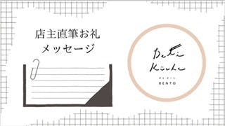 店主直筆のお礼メッセージ(お手紙)とDeli Kücheの人気お惣菜を真空パウチにして冷蔵配送あるいは店頭にてお渡しします。