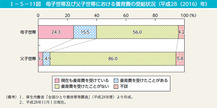 その他には、本来子どもの父親から受け取れるはずの養育費を支払われていないケースが50%を超えるとされています。