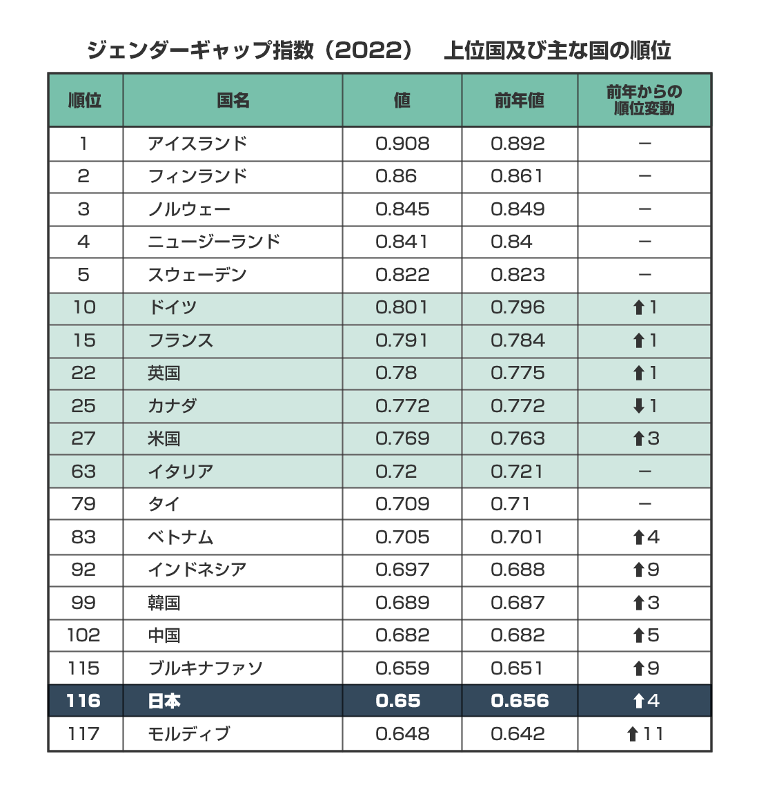 しかし、2022年世界経済フォーラムが発表した「ジェンダーギャップ指数」によれば、日本は156カ国中116位であり、主要先進7カ国(G7)でも最下位となっています。