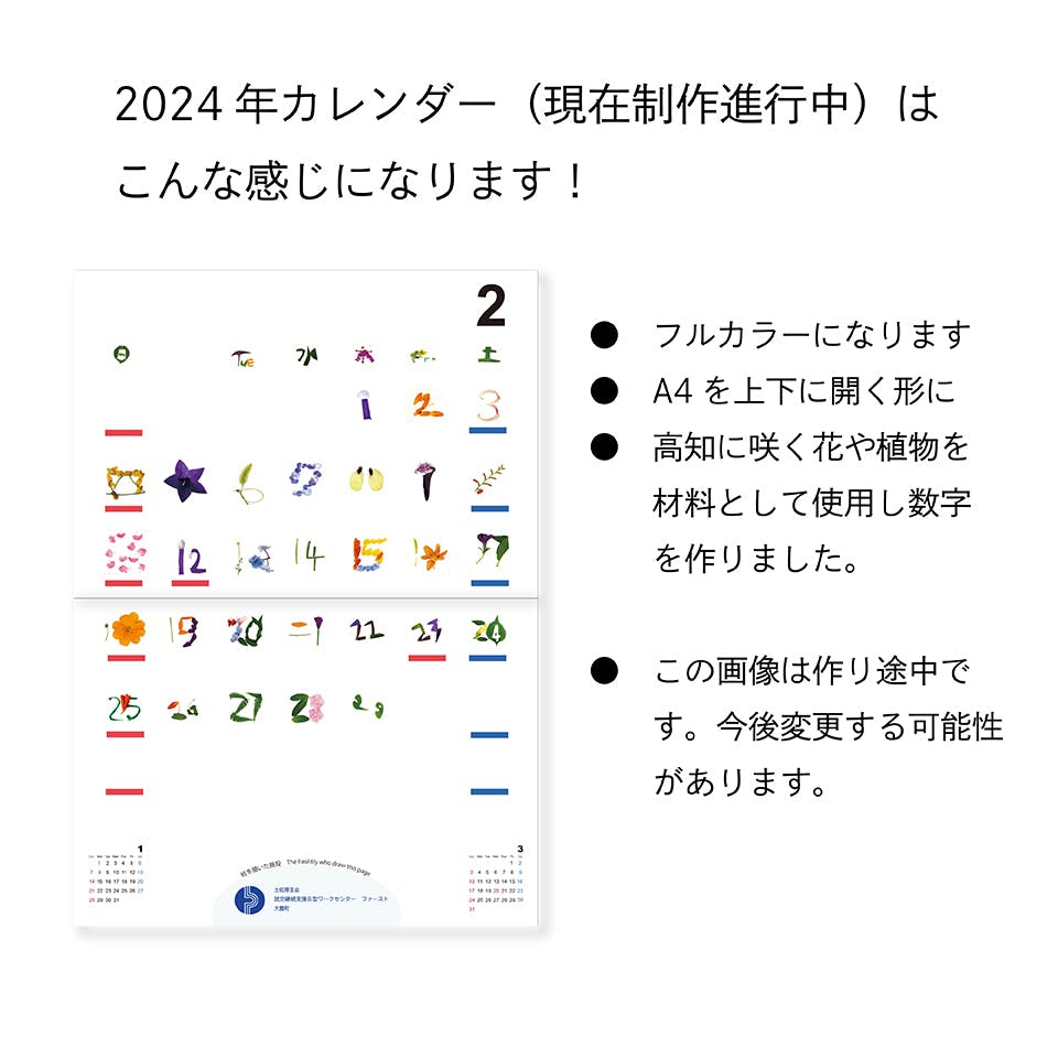 現在制作中の2024カレンダーは、高知の野に咲く花や植物を使用してカラフルな仕上がりになっています。