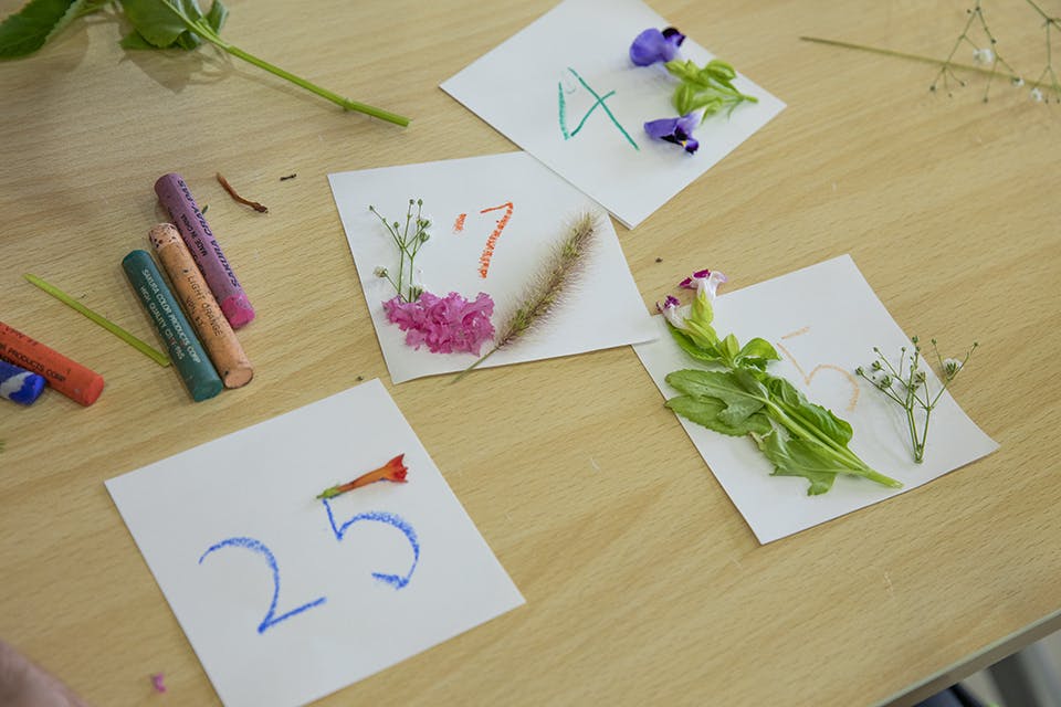 ● 高知の野に咲く花や植物をたくさん使用し、自由に数字や文字を作りました。