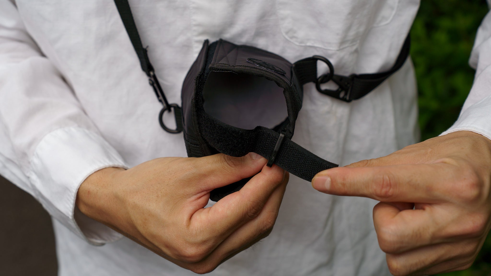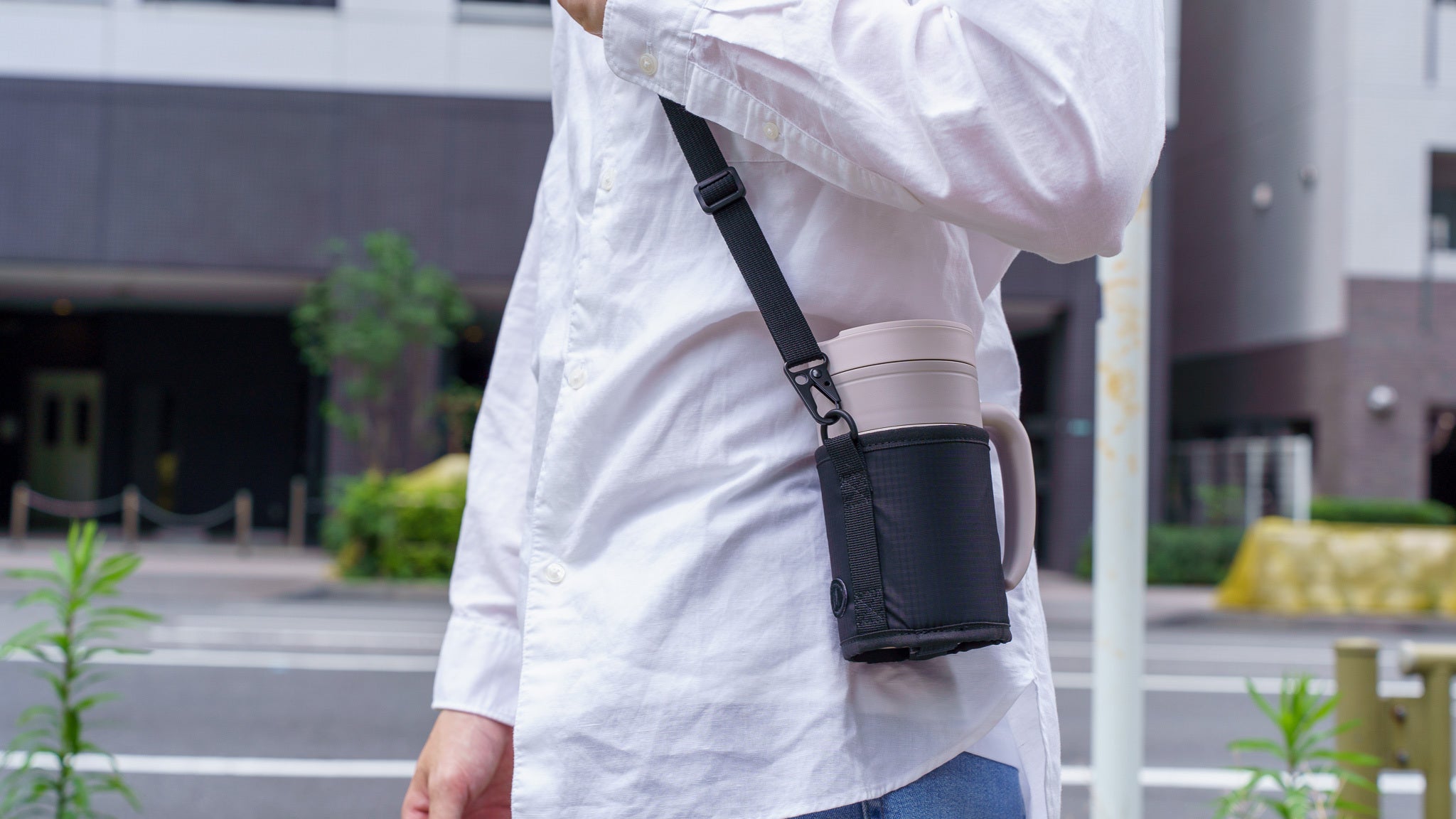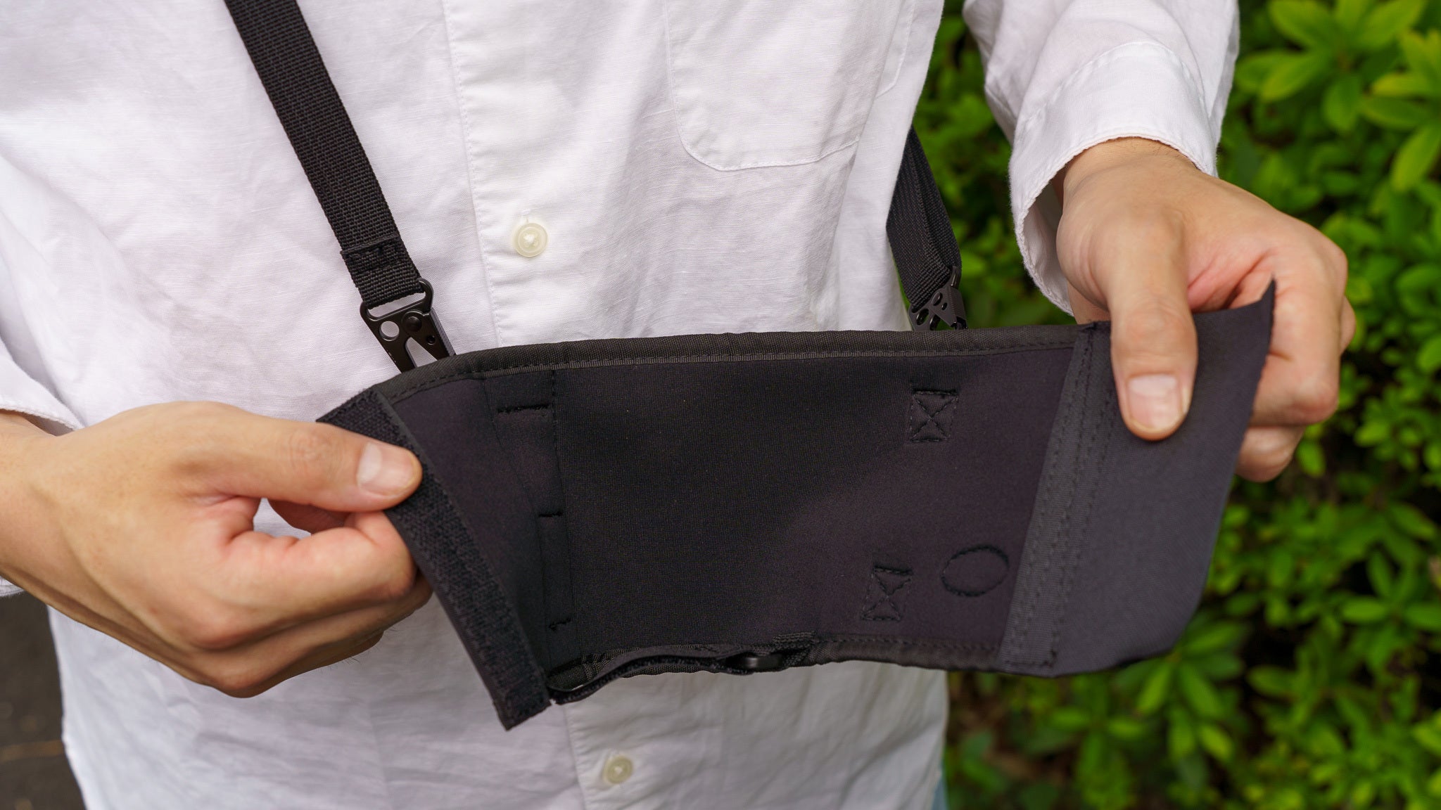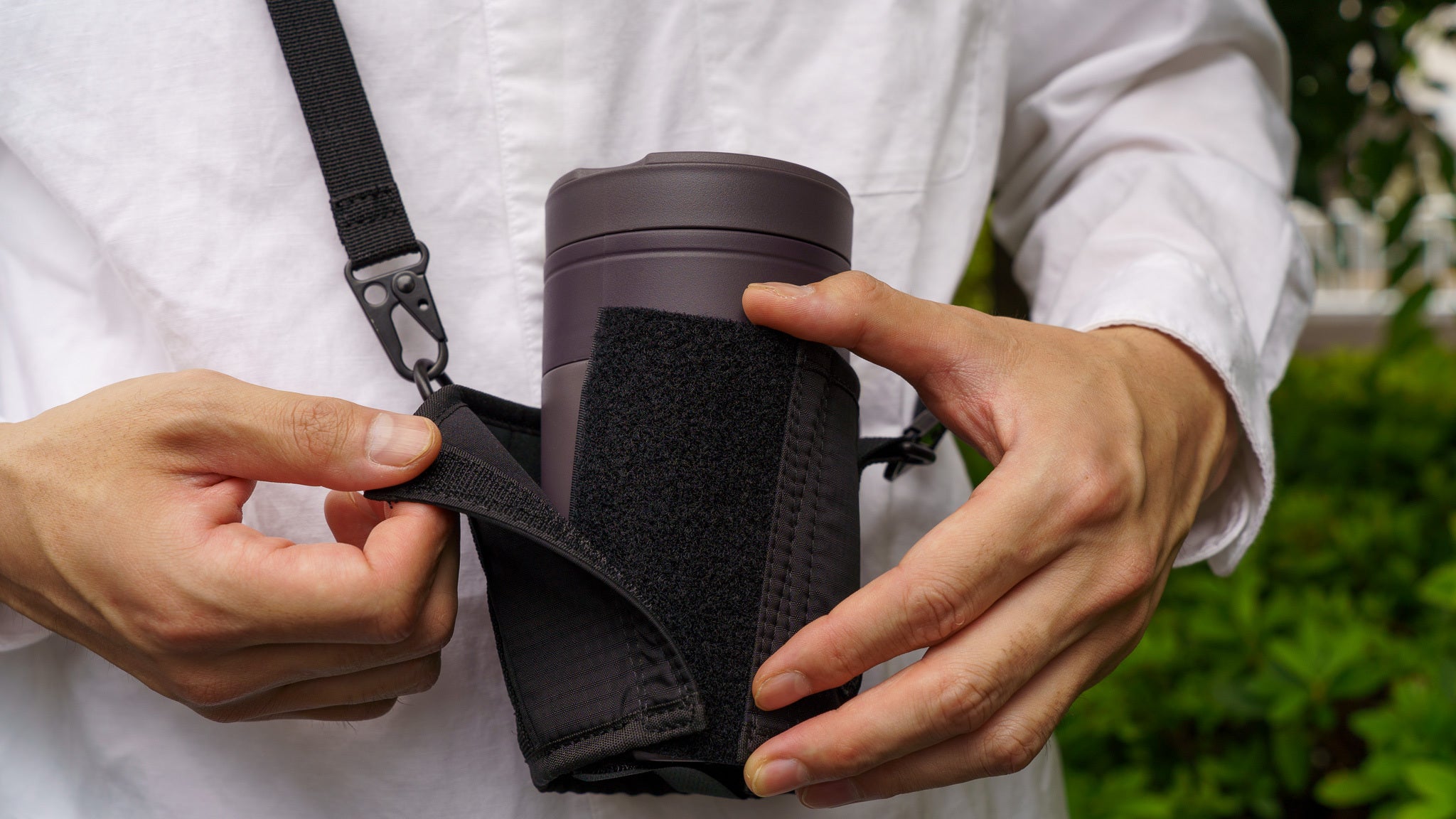 専用スリングカバーには広めの面ファスナーを配し、こちらも細かくサイズ調整できる仕様に。スムーズにタンブラーを出し入れできます。