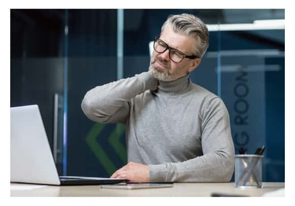 仕事に集中するあまり、長時間不自然な体勢でパソコンに向かっていると姿勢が崩れ、肩こりや腰痛の原因になるばかりか、ストレートネックにもつながってしまいます。