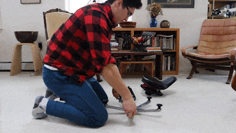 彼は、腰痛のためにあらゆる種類の椅子を試しましたが、満足いくチェアに出会うことができませんでした。
