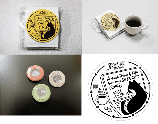 近年、動物たちと共に過ごすことは子どもの発育や高齢者の健康、障害者のリハビリ等を助けてくれることが分かっています。もちろん、動物と暮らすことにはマイナス面もありますし、世の中には動物が嫌いな人や無関心な人もいます。しかし、社会全体でみれば、人々が動物たちと楽しく安全に暮らせる社会は豊かな社会であると考えています。そのような想いから、本学の吉備の杜プロジェクトの演習先として先進的な保護猫活動を展開しているティアハイム小学校さんにお願いしました。そして今回、猫好き大学院生の2人が総社で人気のプティ・グレーヌさんと豆ラボさんのご協力を得て「少しでも多くの猫ちゃん達の幸せにつなげたい」という思いの詰まった可愛いスイーツとコーヒーのセットをご用意しました。猫好き、スイーツ好き、コーヒー好きのみなさま、どうぞ、応援をよろしくお願いいたします。