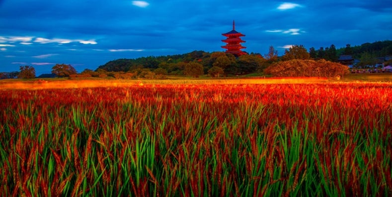 総社のシンボルである備中国分寺と圧巻の赤米です!このような総社市と深いつながりのある赤米は、総社の特産品として注目されており、赤米の名を冠した「赤米フェスタ」が備中国分寺で例年夏に実施されています。総社赤米大使の相川七瀬さんも参加された赤米フェスタは今年も大盛況に終わりました。