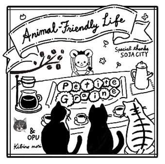 当店は、総社市の商店街通りにある築100年以上の古民家で営業しております。創業前に物件の内見で、建物の2階に上がると猫が飛び出してきたり、改装工事中の折、コンクリートを打設したのですが翌朝行ってみると…そこには可愛らしい猫の足跡が…なんてエピソードもあります。今でもお店の周辺には野良猫がおり、近所の方の中には捕獲して去勢手術をしたり、色々と情報を調べて譲渡会に出したりしている方もおりました。そんな中で、今回の企画のお話をいただき保護ねこ施設ティアハイム小学校の活動を知り、当店も協力できることを嬉しく思います。