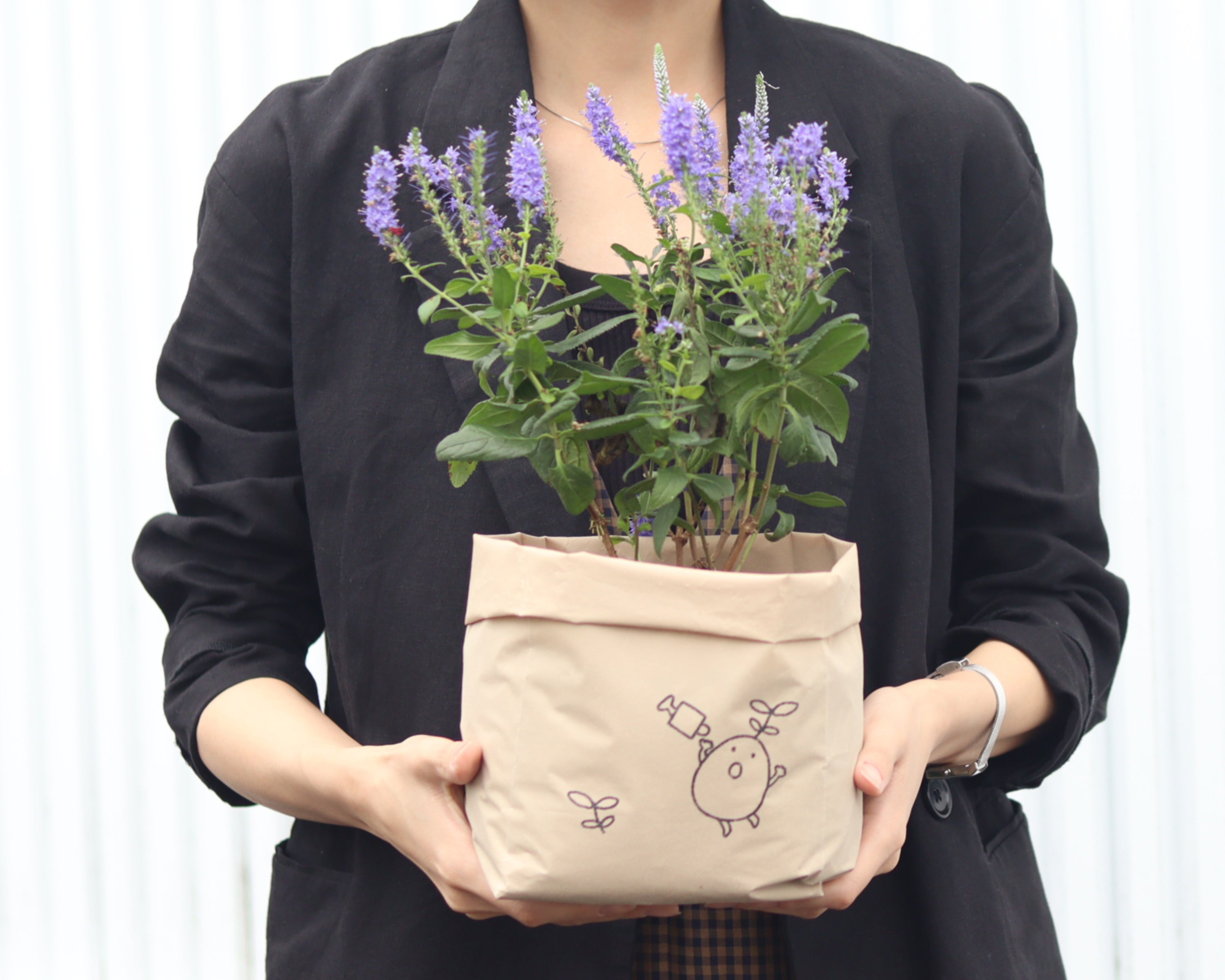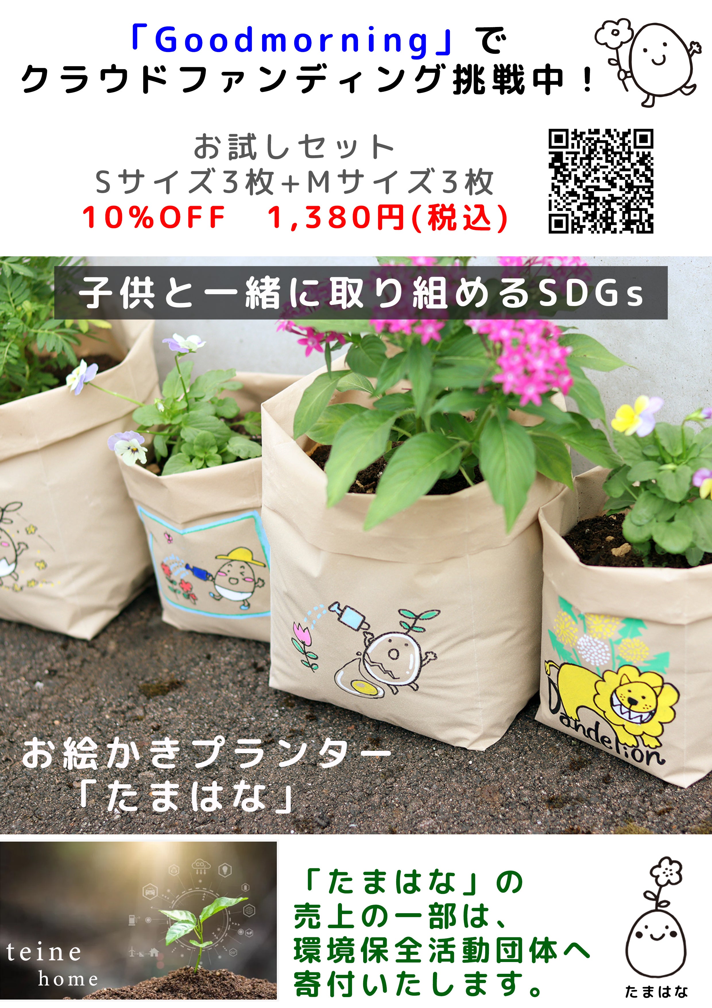 ゴミ箱に捨てることができるフィルムプランターを、弊社ブランドの「たまはな」として独自プロダクトで生産いたします。「たまはな」専用パッケージも、10%脱プラスチック素材で準備いたします。