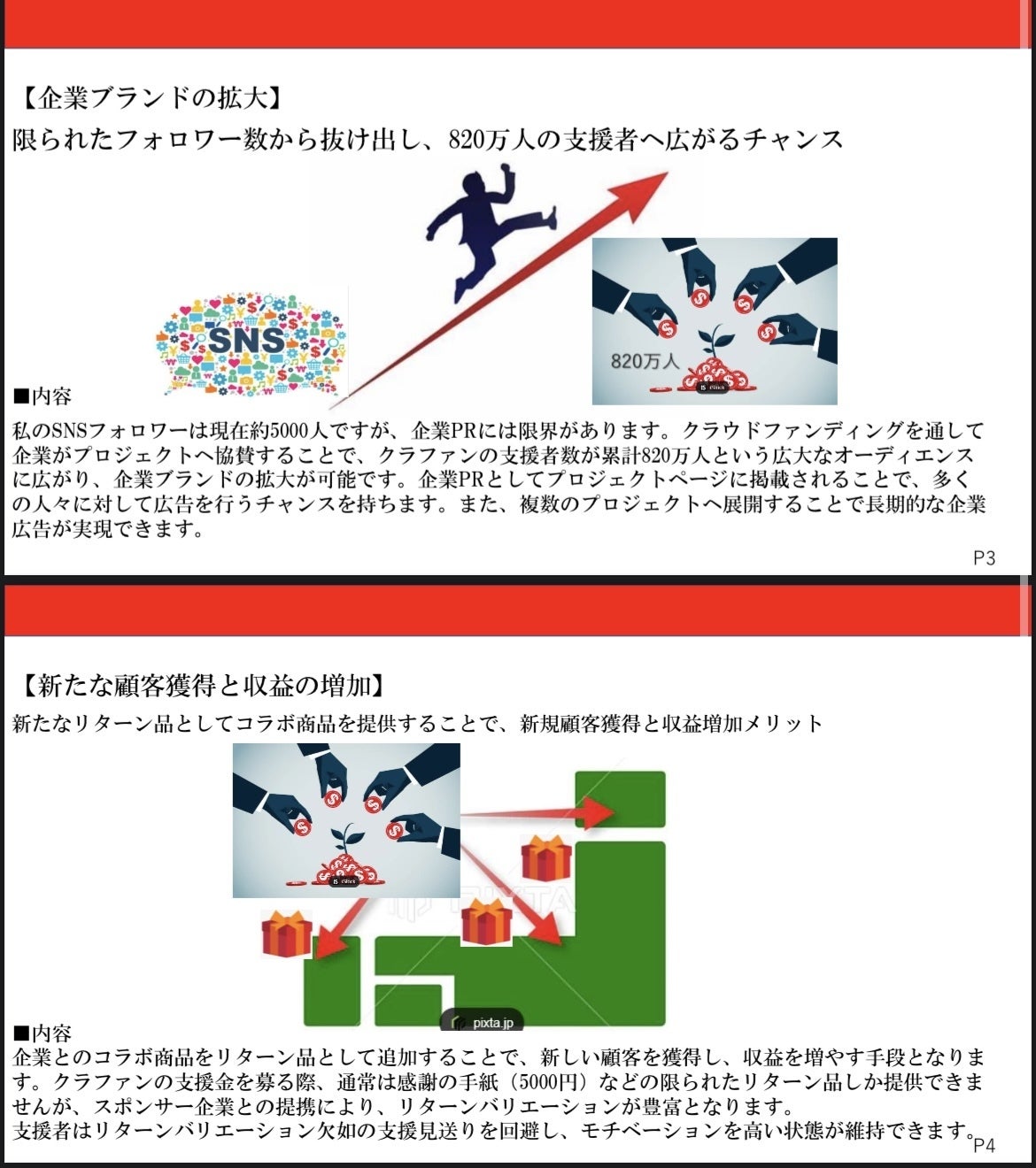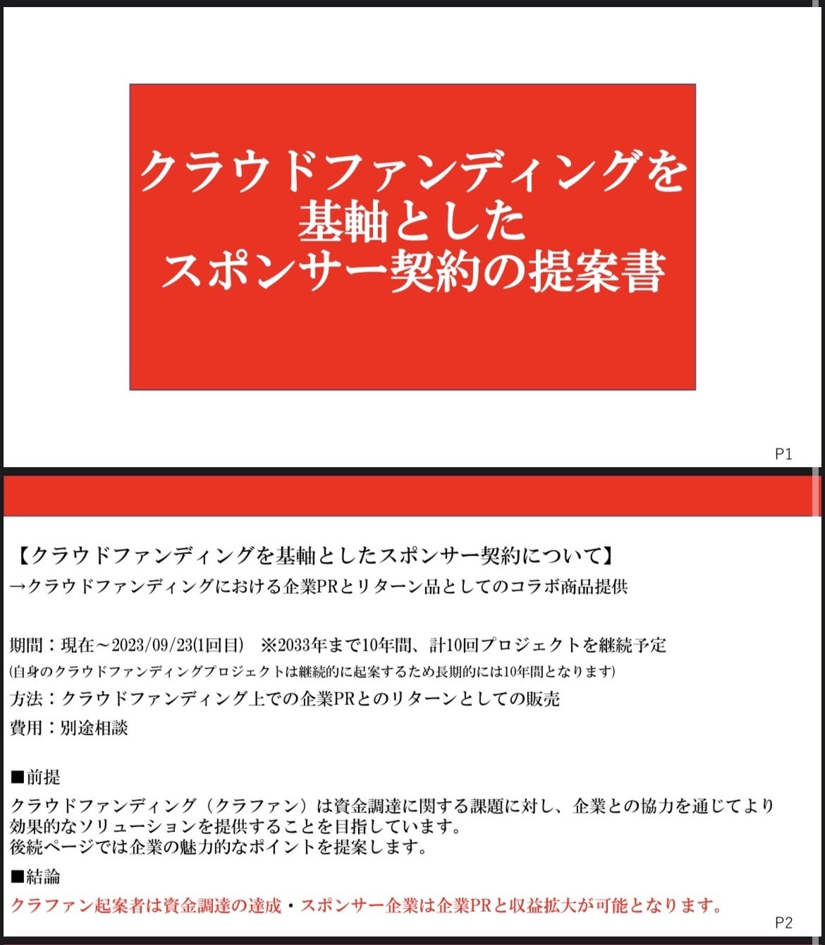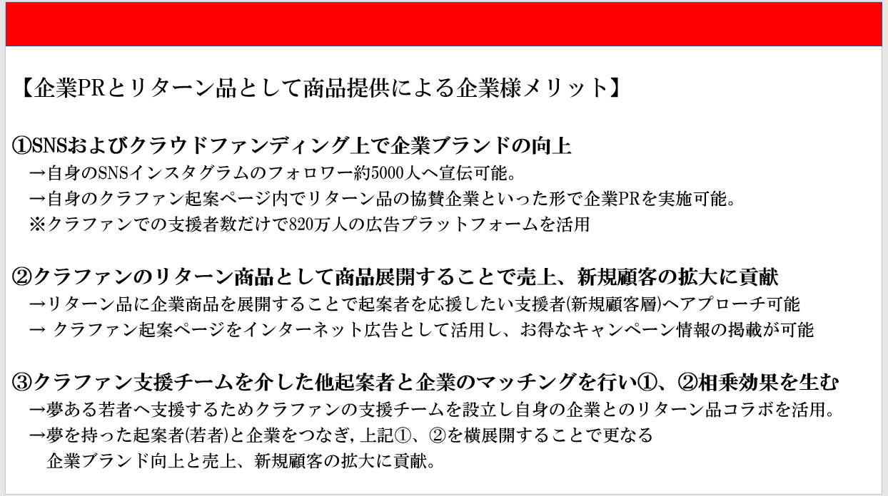 →クラウドファンディング掲載期間に月3回以上スポンサー企業を行う→広告内容については別途相談