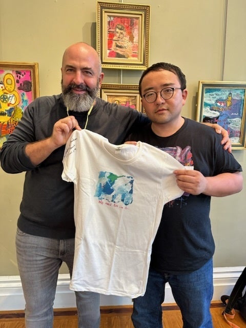 ニューヨークの個展にて展示する作品に近い小型作品とコラボTシャツ