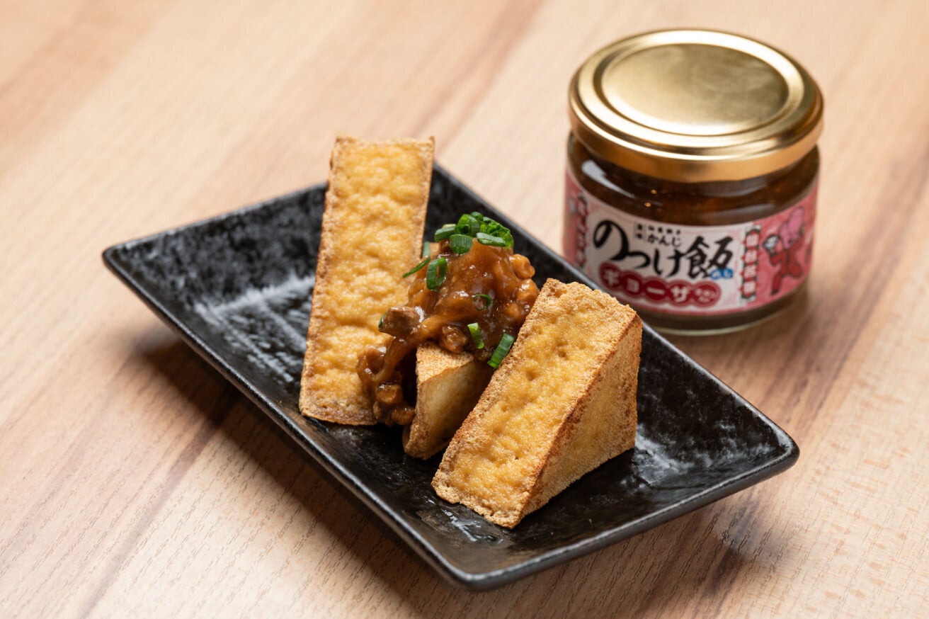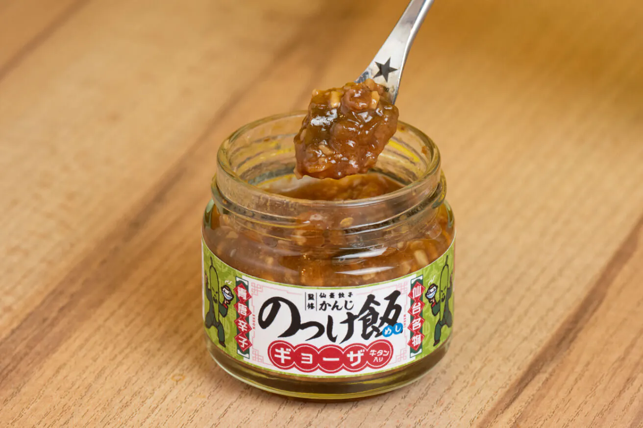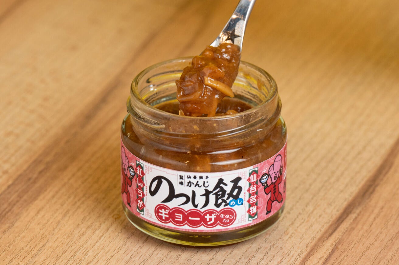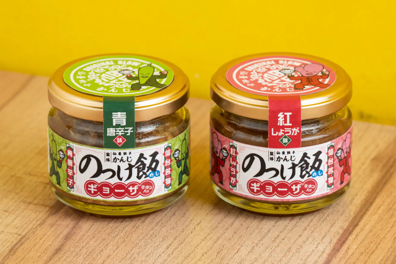 「仙臺餃子かんじ」の餃子の中でも、見た目のインパクトが大きい「紅しょうが」としっかり辛い「青唐辛子」を「のっけ飯ギョーザ」として完成させました。