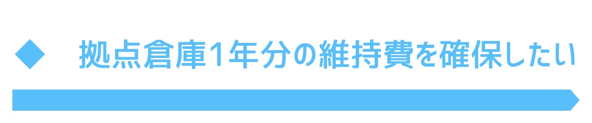 現在、埼玉県所沢市にある拠点倉庫 1年分の維持費をまかなうこと。