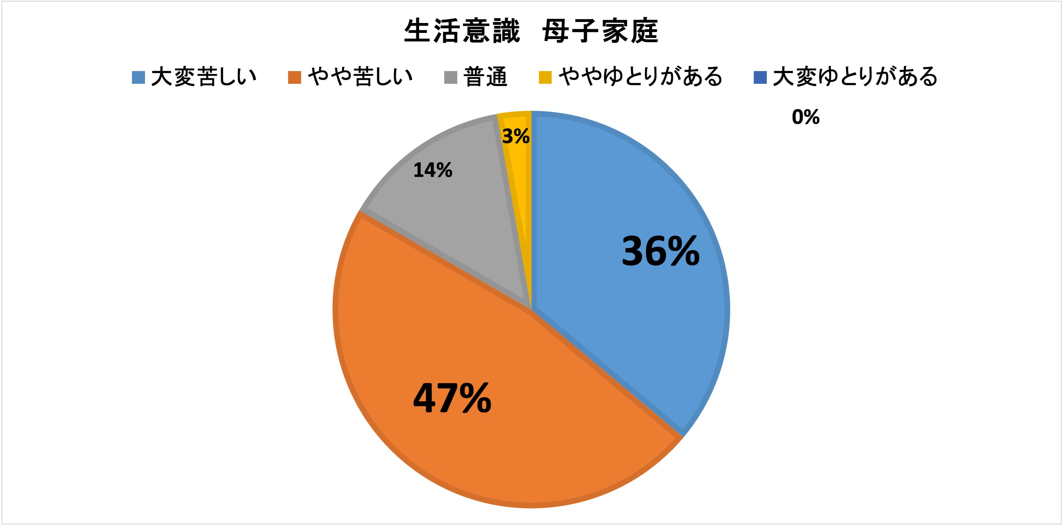 母子家庭に絞ると8割が「生活が苦しい・大変苦しい」と回答し、障害者世帯と傷病者世帯でも7割が「生活が苦しい・大変苦しい」と回答しています。