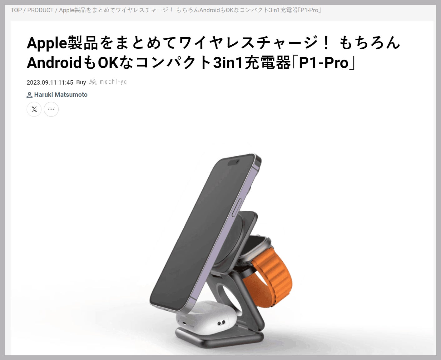Apple製品をまとめてワイヤレスチャージ! もちろんAndroidもOKなコンパクト3in1充電器「P1-Pro」