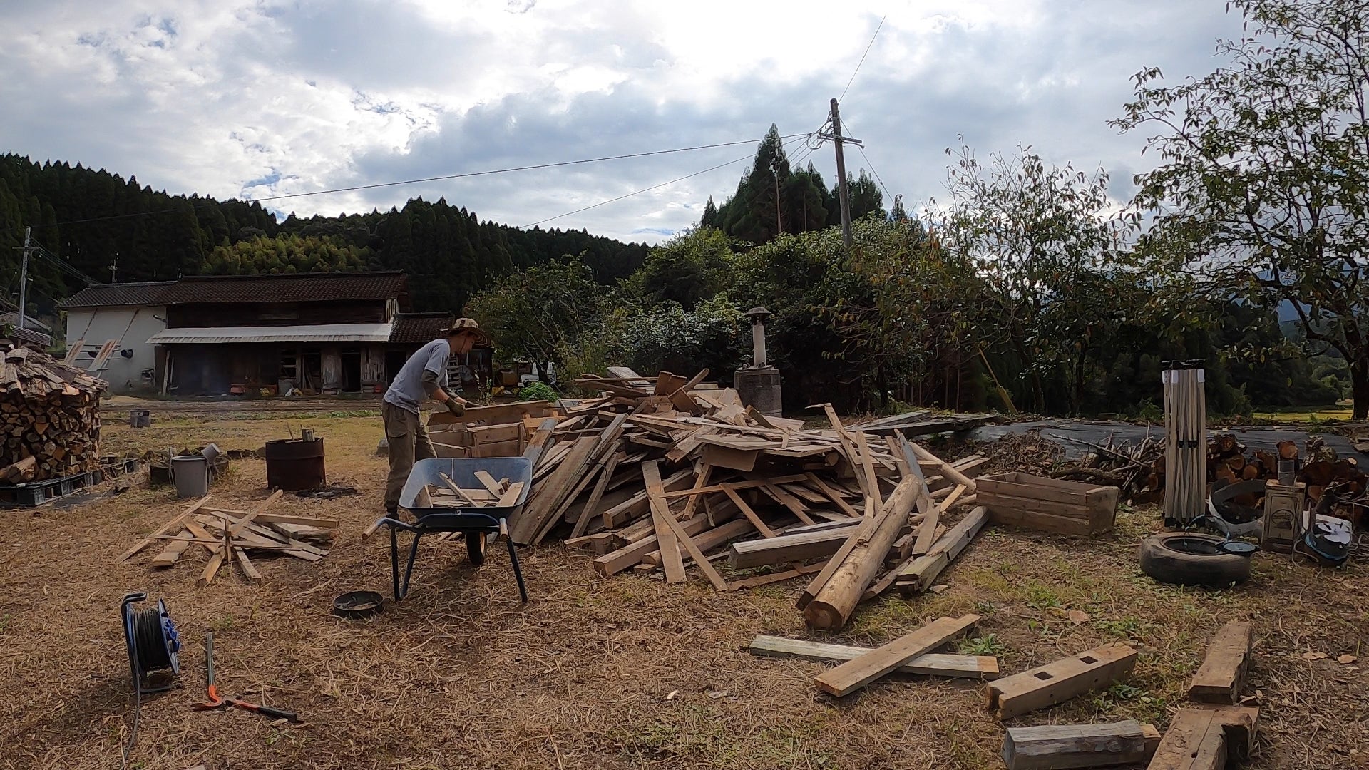 さて、その解体作業で出た大量の廃材を片付けることにしました。