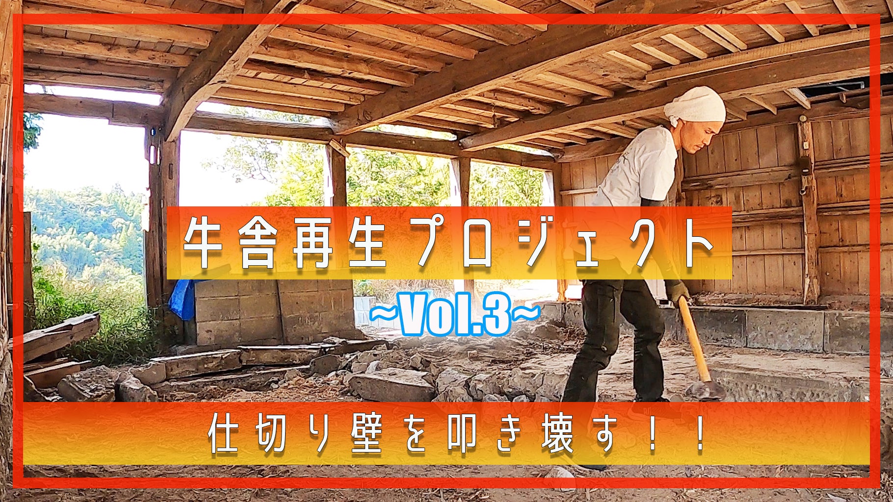 牛舎の仕切りになっているブロックを壊す!!