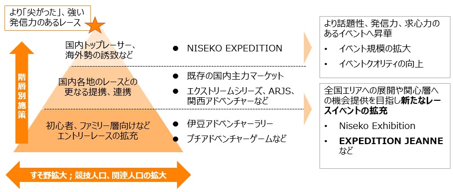 現在『NISEKO EXPEDITION』は海外チームも参戦するなど国際レースとして、日本最高峰のアドベンチャーレースイベントへ成長。一方で本文記載の通り収益性が極めて低く、続けていくためには資金調達が喫緊の課題。日本におけるアドベンチャーレースの歴史は25年と意外と長いのですが、メジャーなマーケットとしての確立が困難な状況。一つの阻害要因として大きいと考えているのは「高価格設定の難しさ」。かかるコストを回収可能な価格設定が非常に難しいということ。「自然はタダ」との考えからなのか、製造業を軸に成長してきたマーケットマインド(安くていいモノ)を根幹とした根強い「デフレマインド」からなのか、そもそも実感値として「そんな余裕はない」という事なのか。他にも様々な要因が複合的に関連しての現状だとは思いますが、いずれにせよ、かけたコストの回収が非常に難しく、いいコンテンツでありながら続けることが難しい、という状況に追い込まれていってしまう。これはアドベンチャーレースに限った話ではないかもしれないが。もちろん、お金をだす価値を感じさせるブランディングやマーケティングは我々のすべきことであり今後もしっかり向き合っていきます。