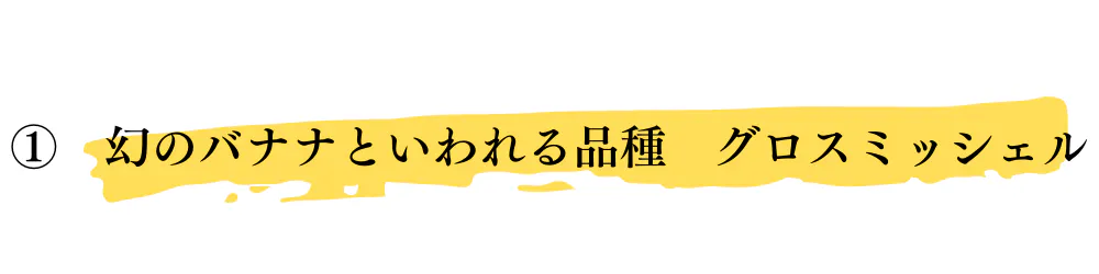 20世紀半ばにパナマ病で姿を消した幻のバナナです。よくスーパーに並んでいるバナナがキャベンディッシュという品種になりグロスミッシェルは食味がよいことから日本でも昭和時代中頃まで人気の高いバナナでした。