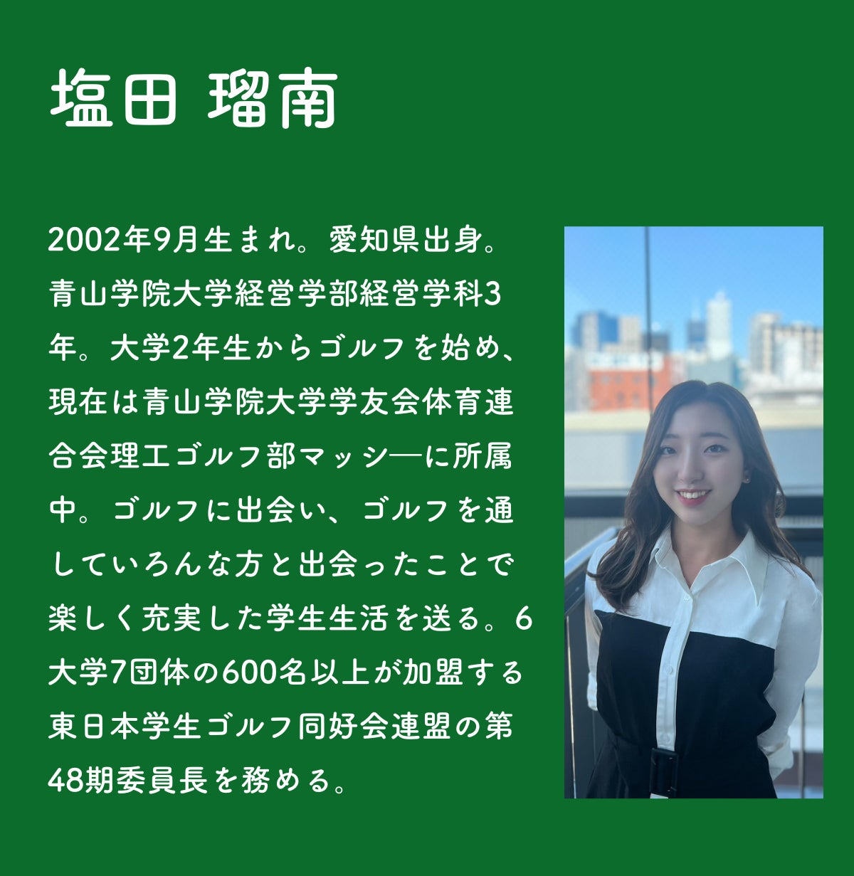 はじめまして!大学生600名以上が所属する、東日本学生ゴルフ同好会「HGA」の委員長の塩田と申します。