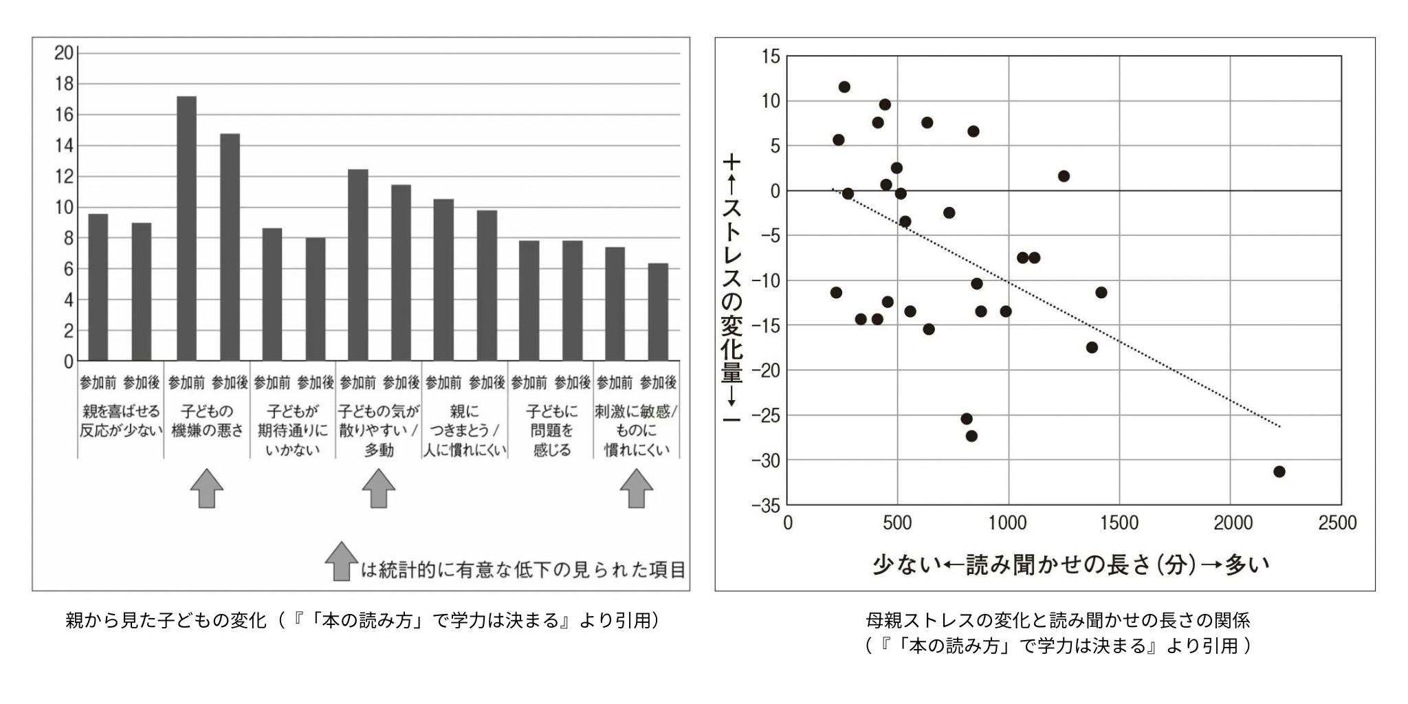 ある調査結果では、約8週間、読み聞かせをした前と後では、全般的に母親の子育てストレスは明らかに低下していることがわかりました。
