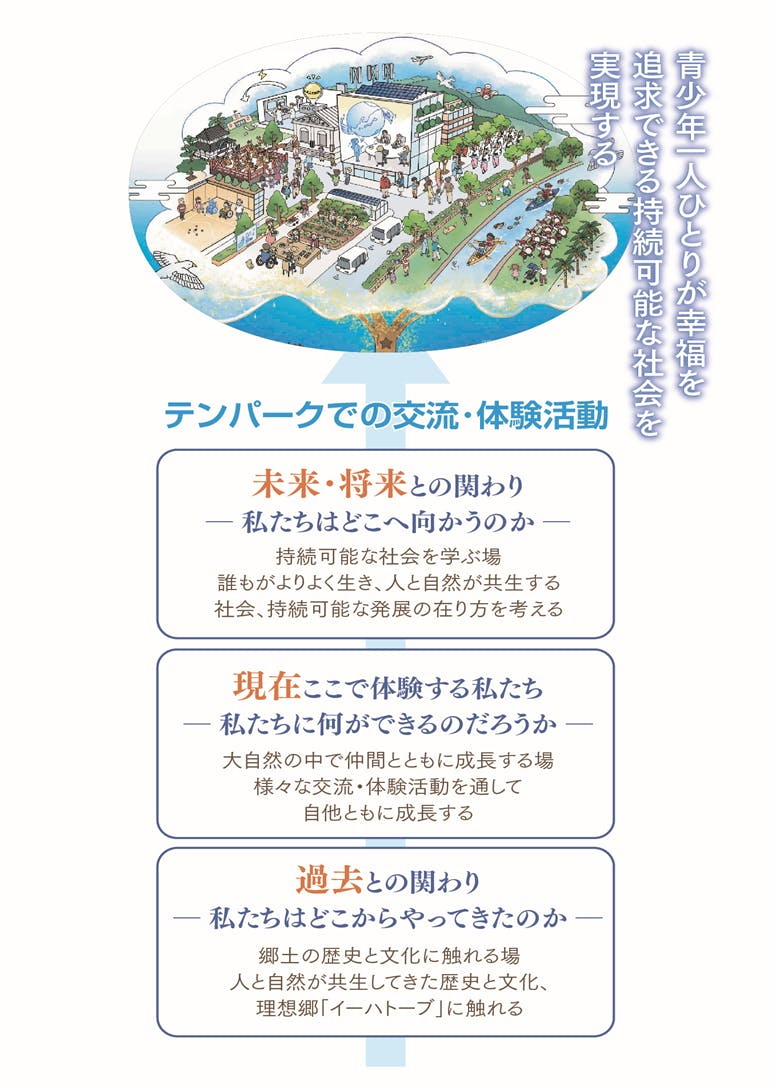 「青少年一人ひとりが幸福を追求できる持続可能社会を実現する」ことをめざし、活動のプログラムをより一層高める取組をしていきます。過去・現在・未来という「時間軸」、岩手山麓の大自然、地域、郷土のもとで仲間との交流という「空間軸」によって、テンパークでの交流・体験活動の意義がさらに広がりをもって感じられるような工夫を積み重ねていきます。