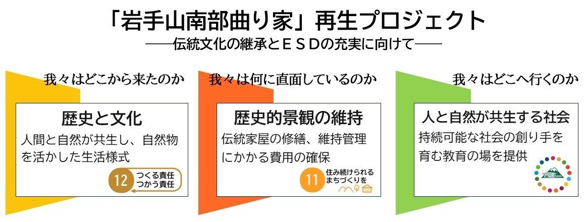 かつて御所地域の人々が託した「偲郷」のバトンを、未来への希望として次代につなげるため、「岩手山南部曲り家」の茅葺き屋根の修繕と体験活動プログラムの拡充を行います。