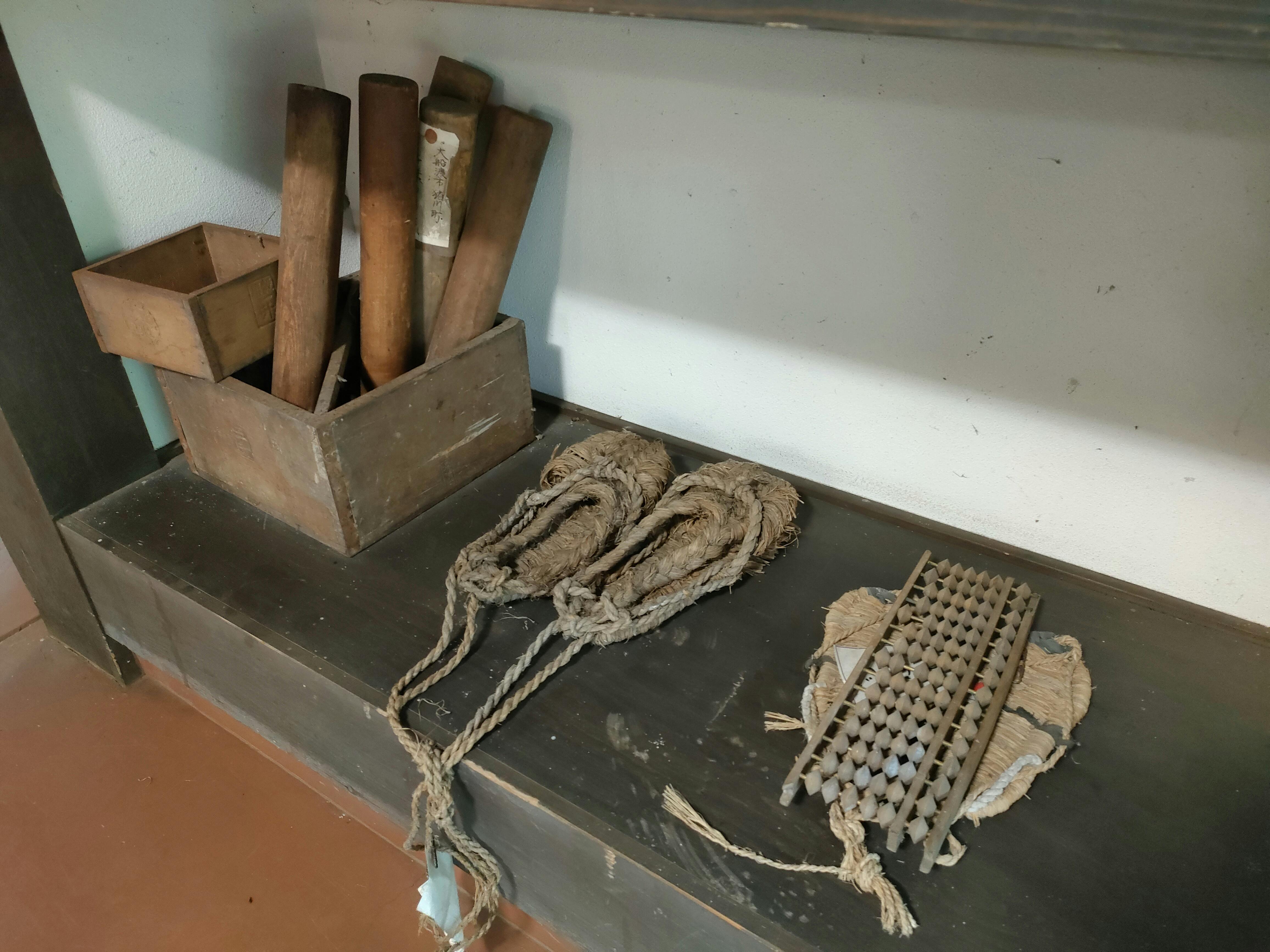 曲り家の民具について、養蚕関係のほかに米づくりに用いられたものなどがあります。