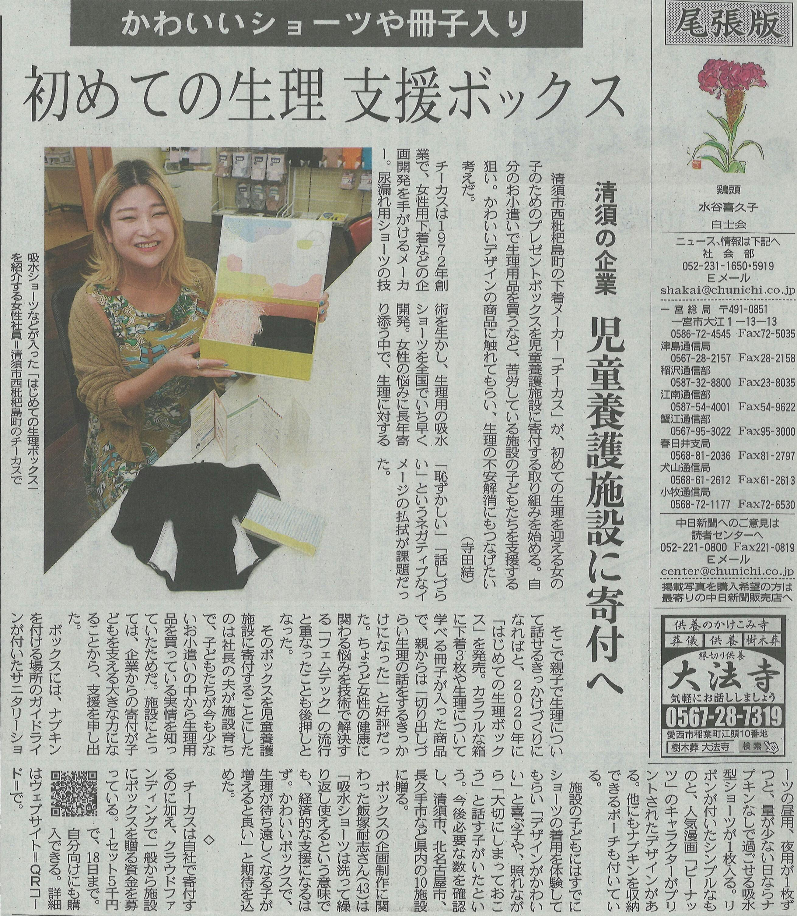 初めての生理、下着メーカーが可愛くサポート 清須、支援ボックスを寄付へ