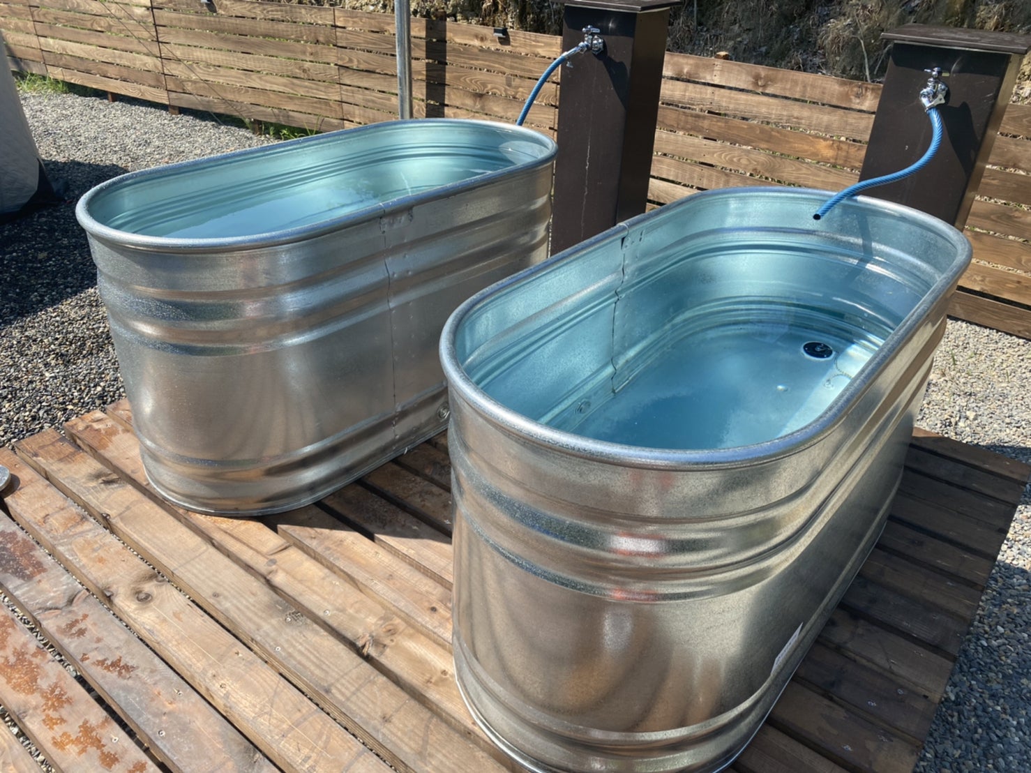 水風呂は1人がちょうど良く入れる大きさを2つ用意しております。