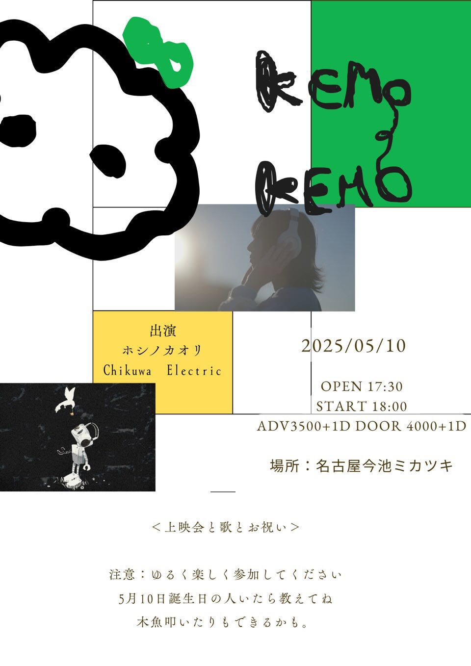 2025/03/03 18:05みなさんこんにちは!ついにライトな上映会を開催します!1完成はしたもののなかなか直接みてもらう機会がなく、色々考えてたんですが上映できるいい場所を見つけちゃいました。地元が名古屋で名古屋開催になりますが、ぜひお時間ある方見にきてもらいたいです。クラファン支援していただいた特典で当日きていただいた方はプレゼントあり!事前に確認したいので私に直接メッセージをいただけたら嬉しいです!日程:5月10日(土曜日)場所:名古屋今池ミカツキ時間:17:30 OPEN 18:00 START前売り価格 3500円 当日 4000円次同じイベントをやる予定は現状ないので是非今回来てもらえたら嬉しいです!!!!イベントチケットはこちらから。事前購入のみ当日入場可能です。https://tiget.net/events/380437 もっと見る