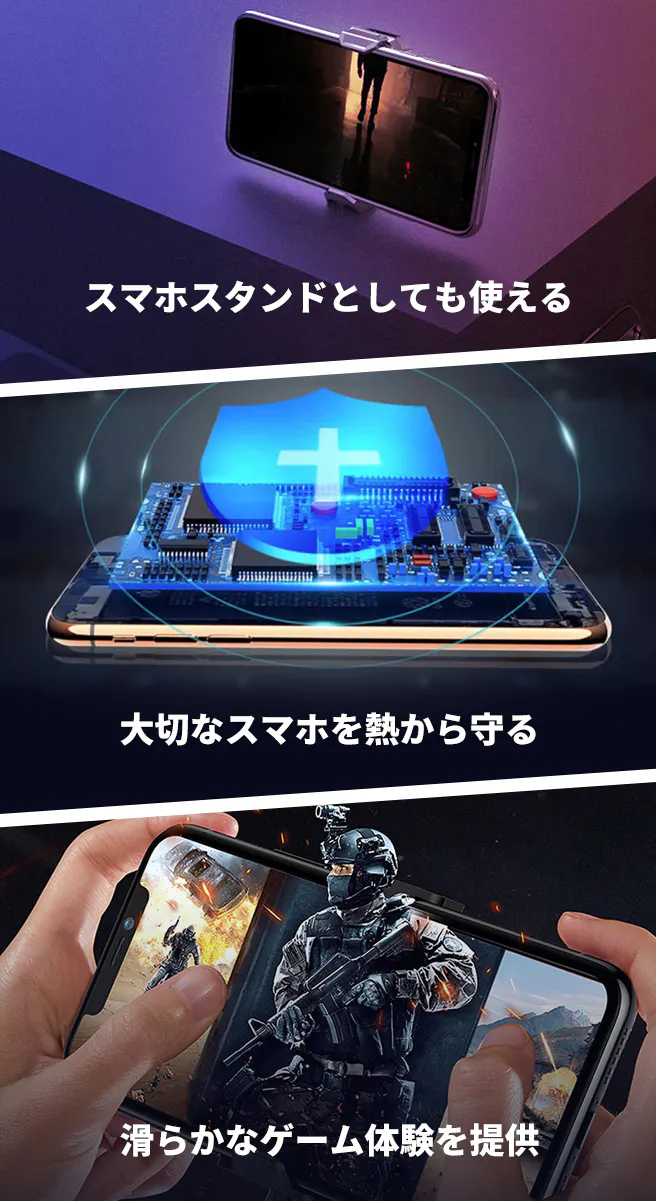 静音ファンが冷却しながらも耳障りな騒音もないし、長時間にスマホでゲームや動画視聴を楽しむことができます。