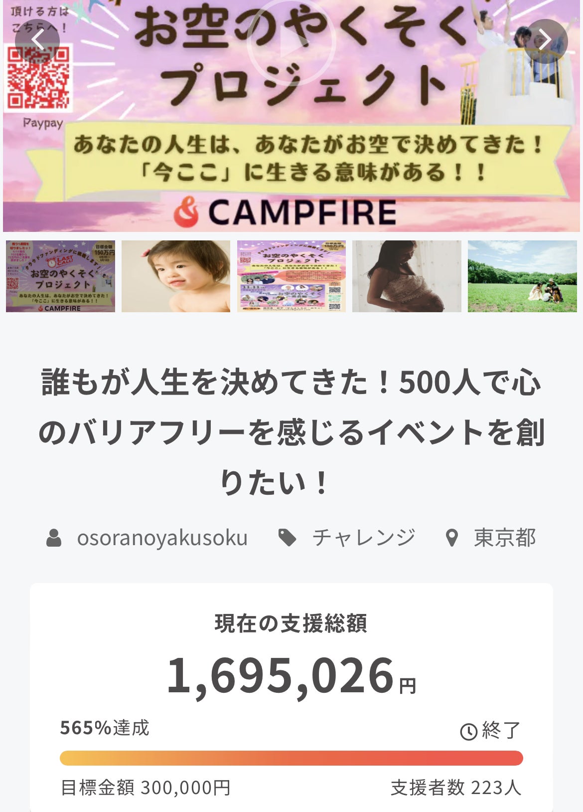 目標金額150万円を達成したこと感謝致します。