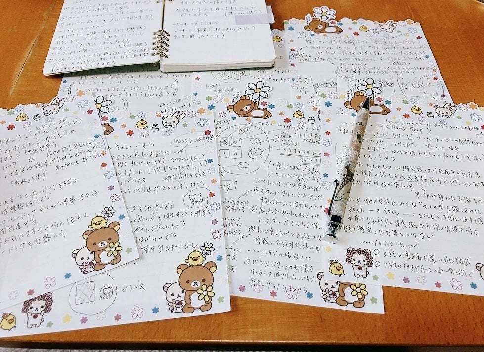 私は新メニューを考える時は、まずは家にある紙に思いつくまま書いて、だいたいのイメージや内容が決まったらノートにちゃんと書いて試作というのがお決まりです。