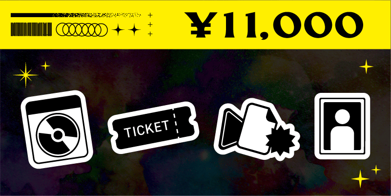 1.Blu-ray/2. フェイクチケット(Blu-ray仕様)/3. ステッカーセット4種類/4. 複製メッセージ入りブロマイド/5. デジタル壁紙(ループ動画)/6. 会員カード/7. ショルダーストラップ/⒏オリジナル缶バッチ4個セット/⒐デザインソックス/10. お出かけ用アクリルスタンド)