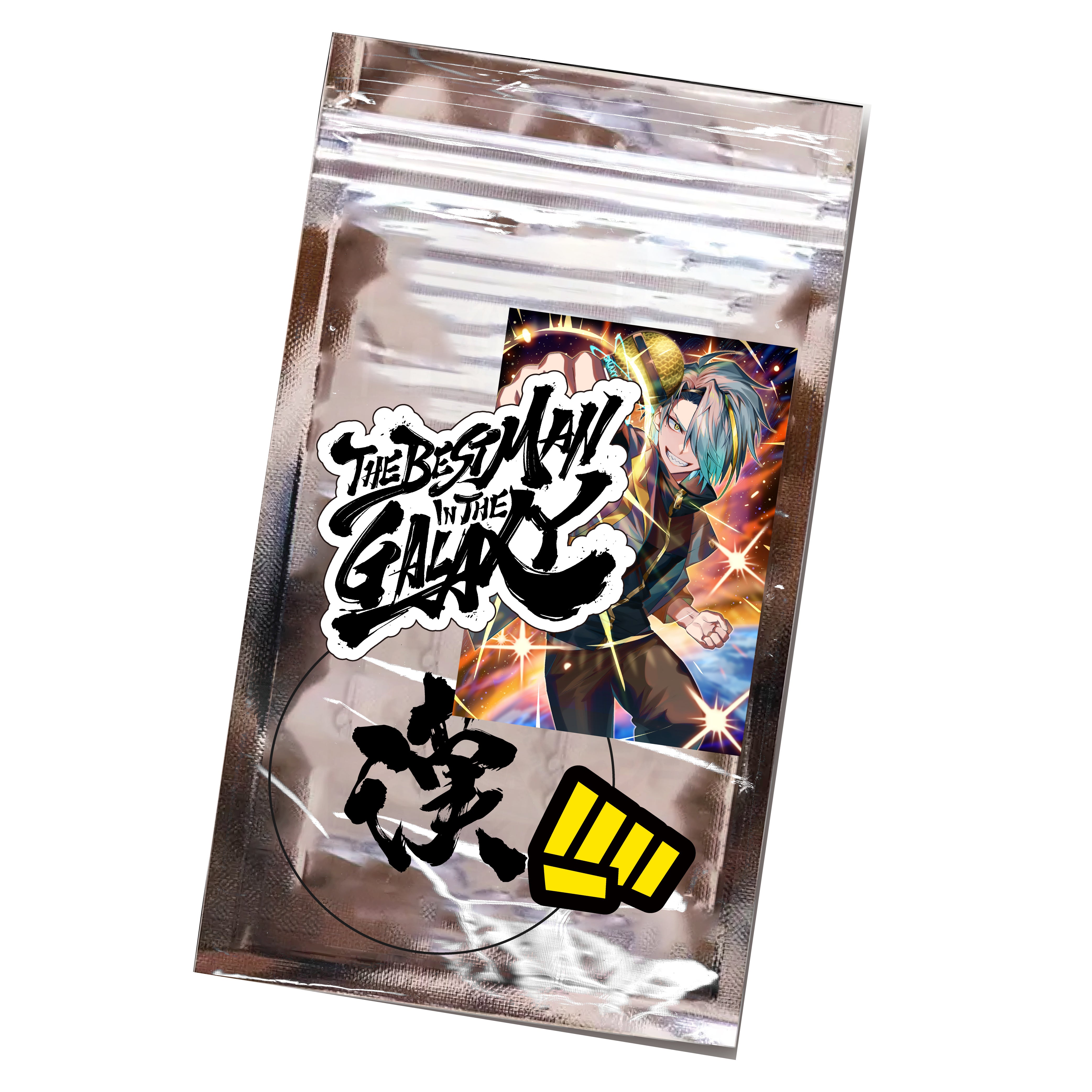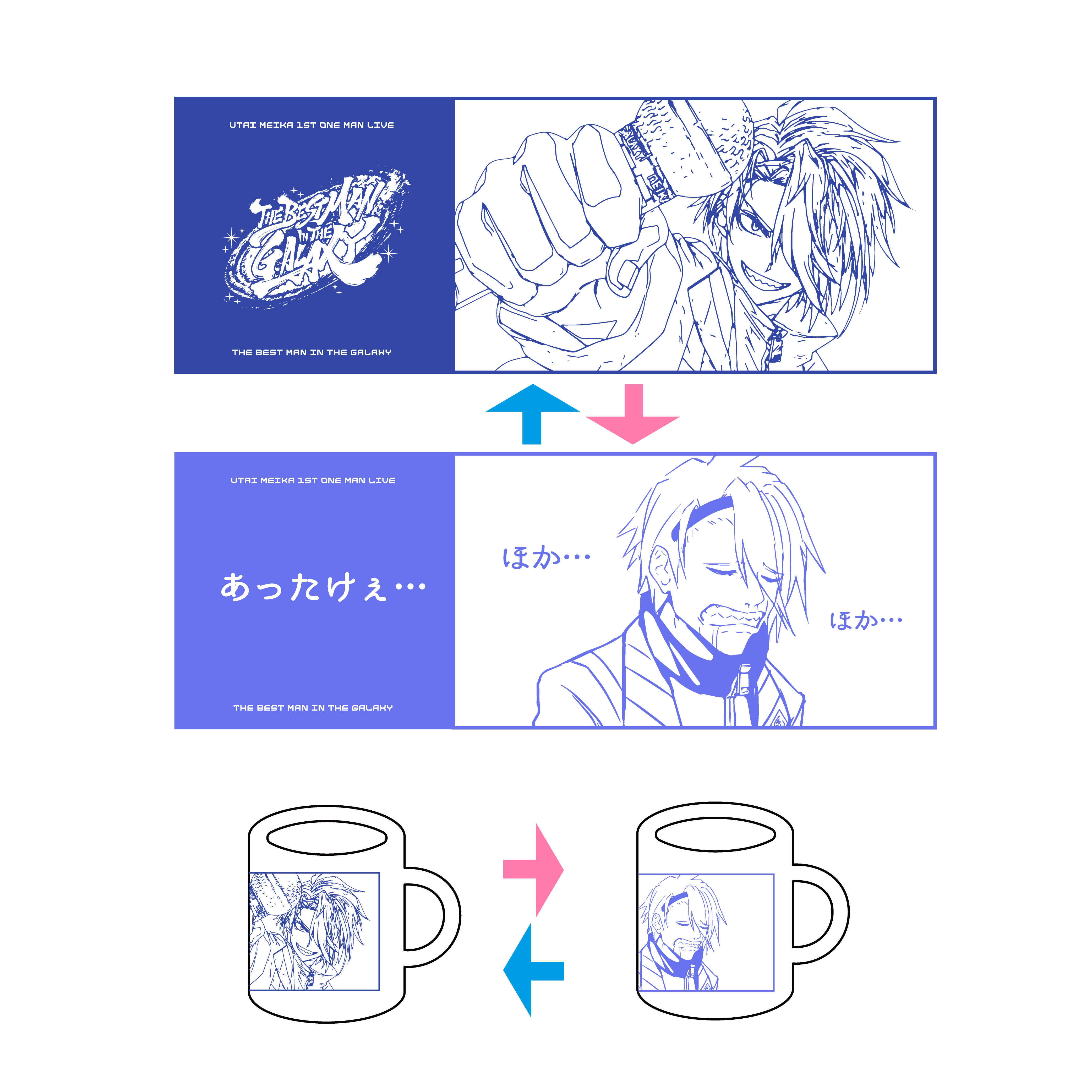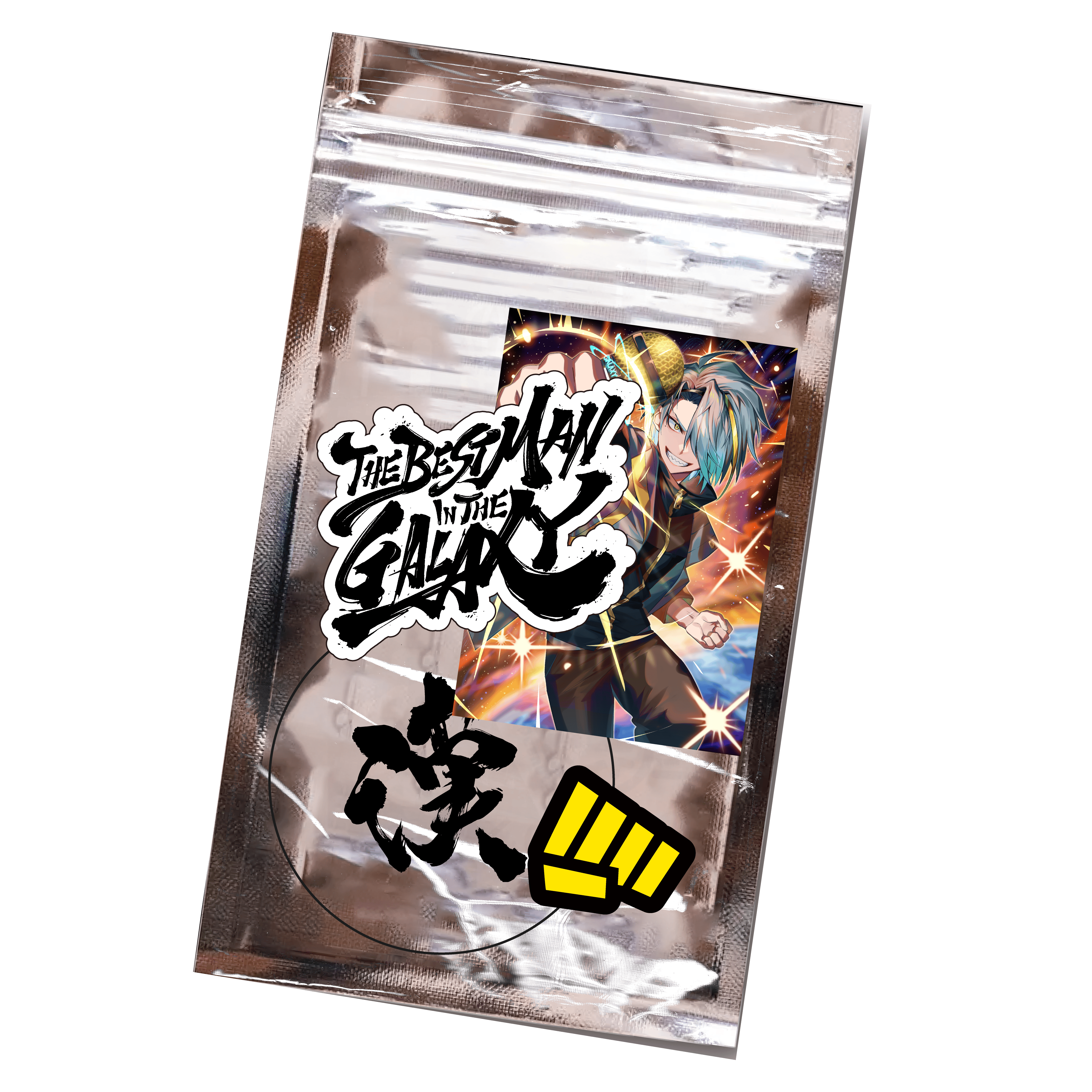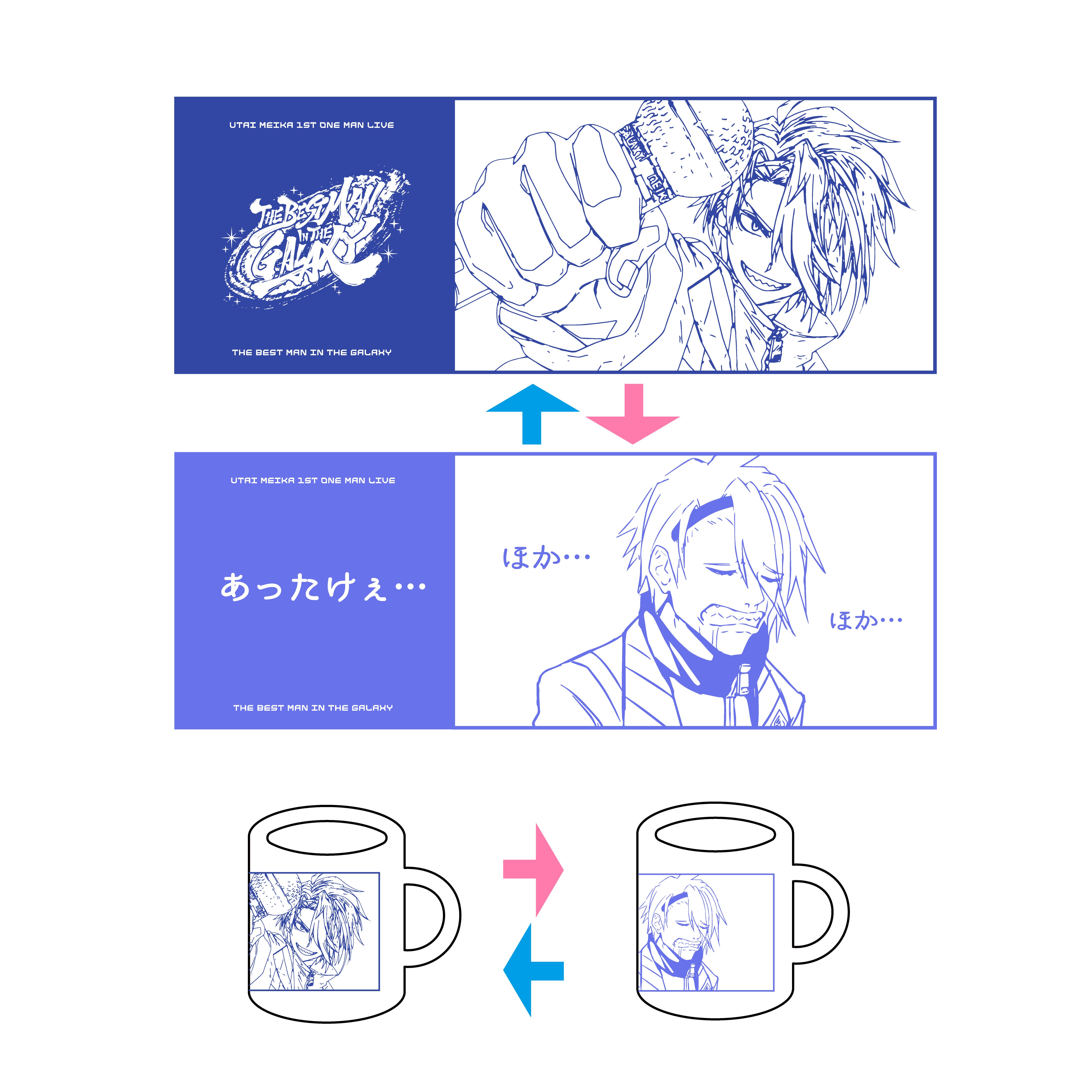 1.Blu-ray/2. フェイクチケット(Blu-ray仕様)/3. ステッカーセット4種類/4. 複製メッセージ入りブロマイド(歌衣メイカ直筆サイン追加!)/5. デジタル壁紙(ループ動画)/6. 会員カード/7. ショルダーストラップ/⒏オリジナル缶バッチ4個セット/⒐デザインソックス/10. お出かけ用アクリルスタンド)/11. タペストリー(漢掛け軸)/12. キャラクターハンガー/13. 漢気ペンライト/14. ペンライトケース/15. マグカップ
