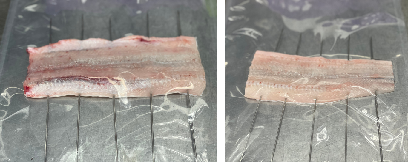 捌きたてのうなぎを真空パックして急速冷凍します。