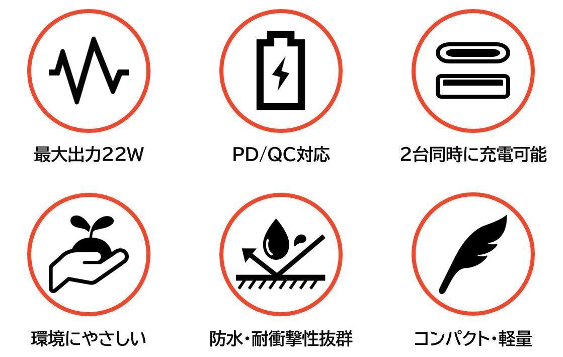 太陽光さえあればどこでも充電可能、ポケットやバッグに入れておくだけで必要なエネルギーを持ち運ぶことができます。