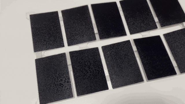 大きい一面のソーラーパネルを切断後、分割された小さいパネルを繰り返しの屈曲に耐える頑丈なフレキシブルフラットケーブル(FFC)で繋げて再構築し、畳んで持ち運べるコンパクト性を実現しました。
