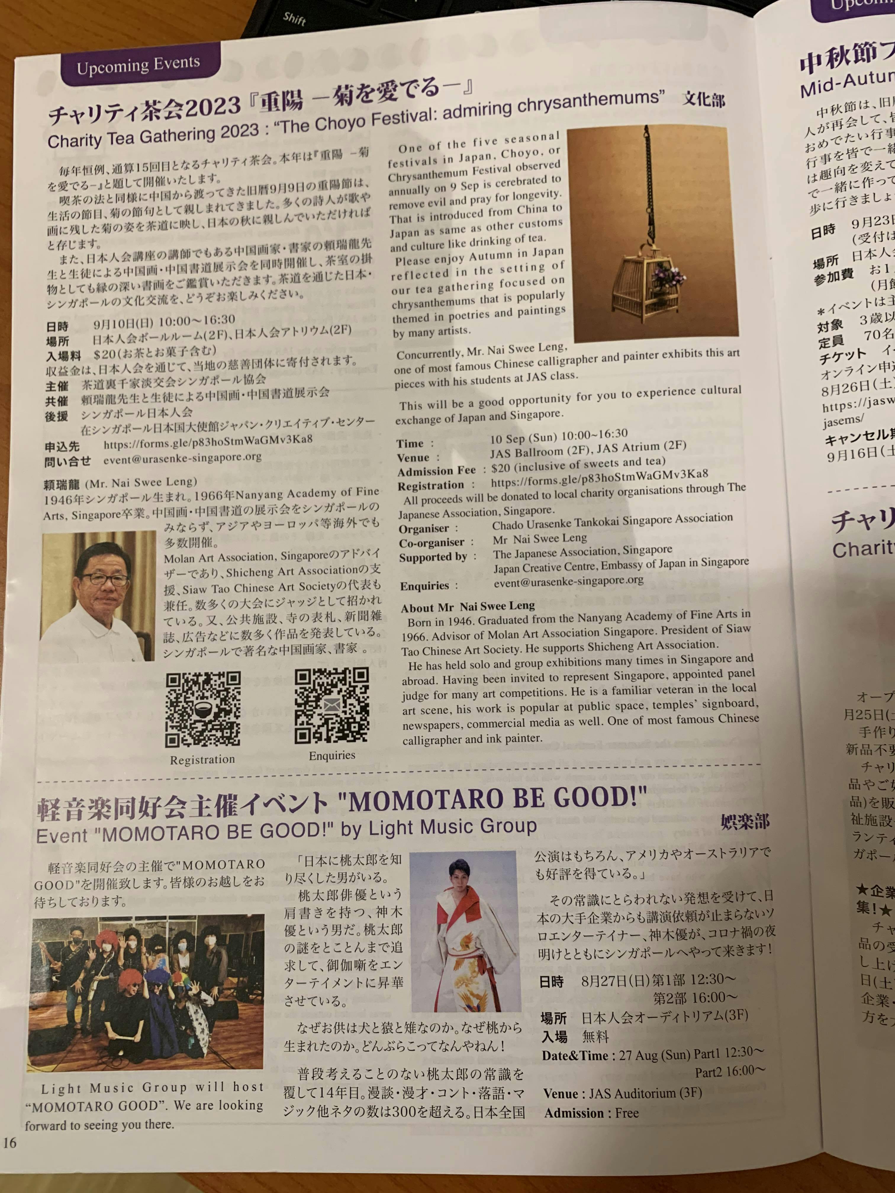 シンガポール日本人会の会報に載せていただきました。