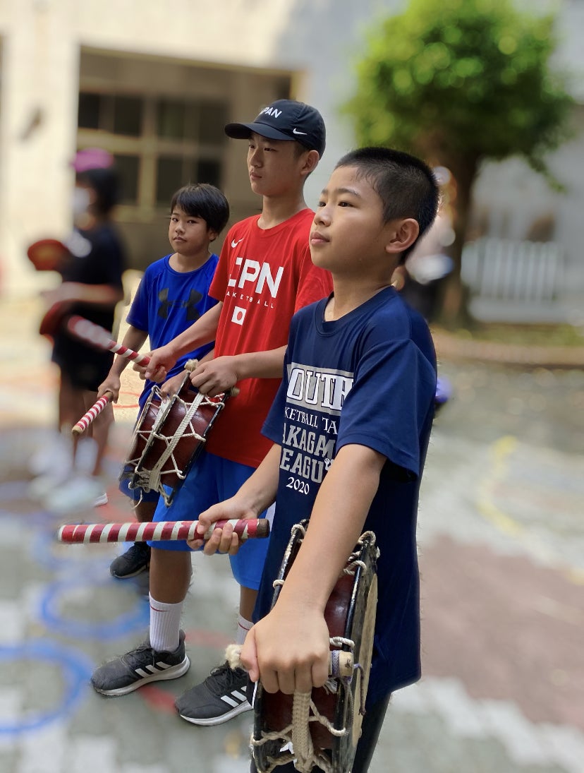 野球部とバスケ部から15人ずつ、綱引きの道ジュネーの際の鼓笛隊に参加することになり、今日小学校で練習してきました。
