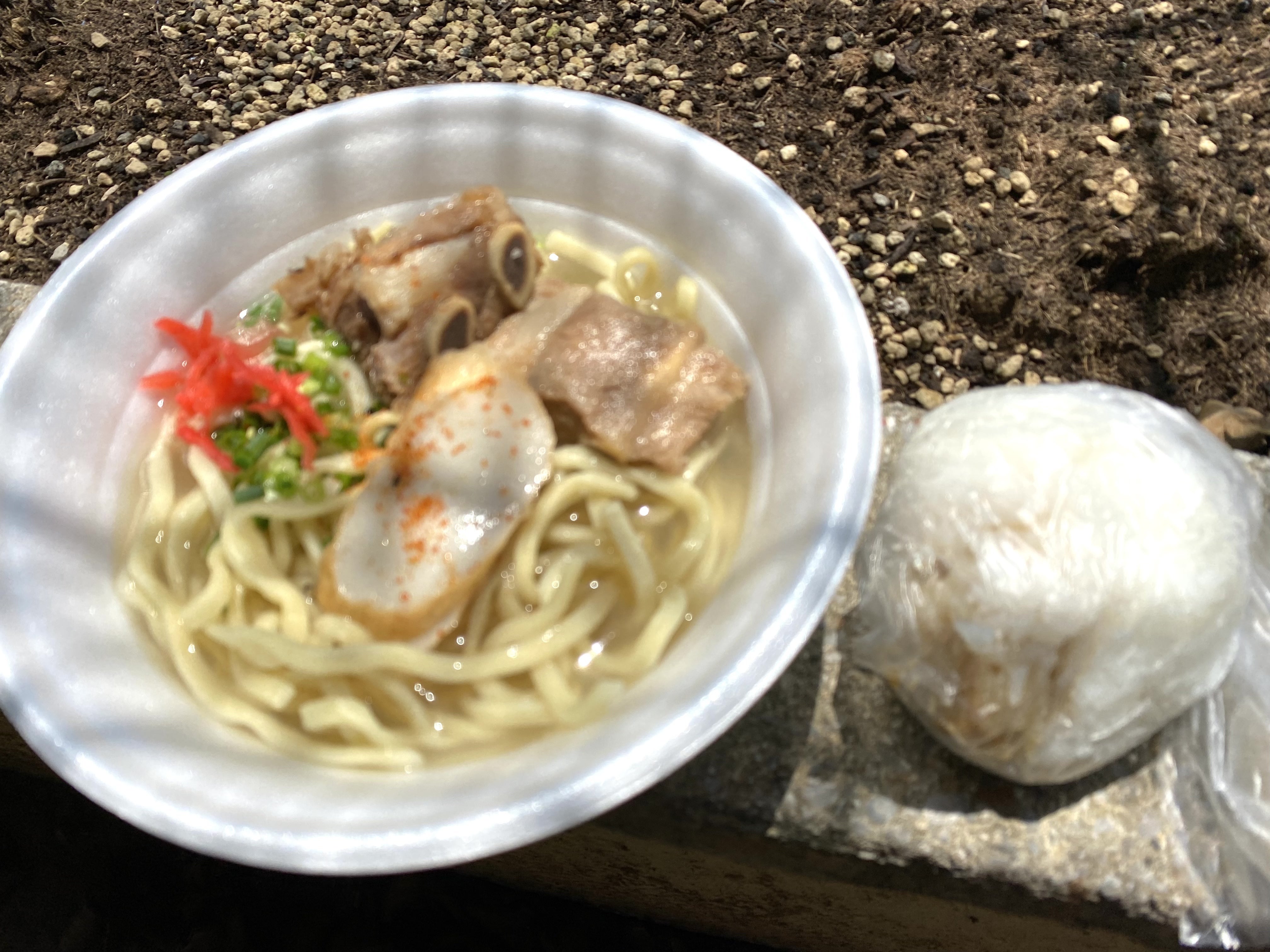 練習の後は美味しいソーキそばと油味噌おにぎりも振る舞われました〜。