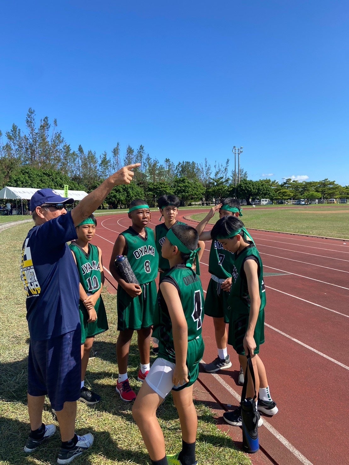 コーチは燃えていて「明日はユニフォームだ!そして緑のハチマキも準備しなさい!」