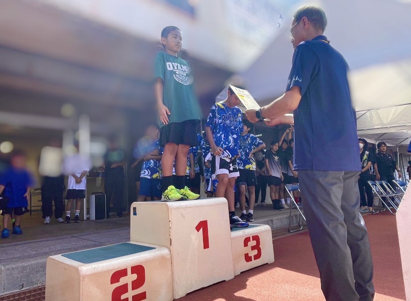 痛いほどの日差しが照りつける中、宜野湾市陸上競技大会が行われました。いつも元気いっぱいの大山バスケ部も参加してきました!