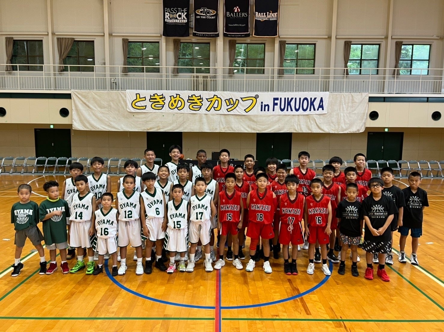 大山小学校男子バスケットボール部は、24チーム中、6勝2敗で5位に終わりました。優勝を目指して海を渡りましたが県外の強豪たちには一歩及ばず、しかし大変収穫のある経験となりました。大会1位は韓国のチーム(175㎝超えが4人いました)、2位が桜丘。大山は桜丘には6点差と健闘しました。