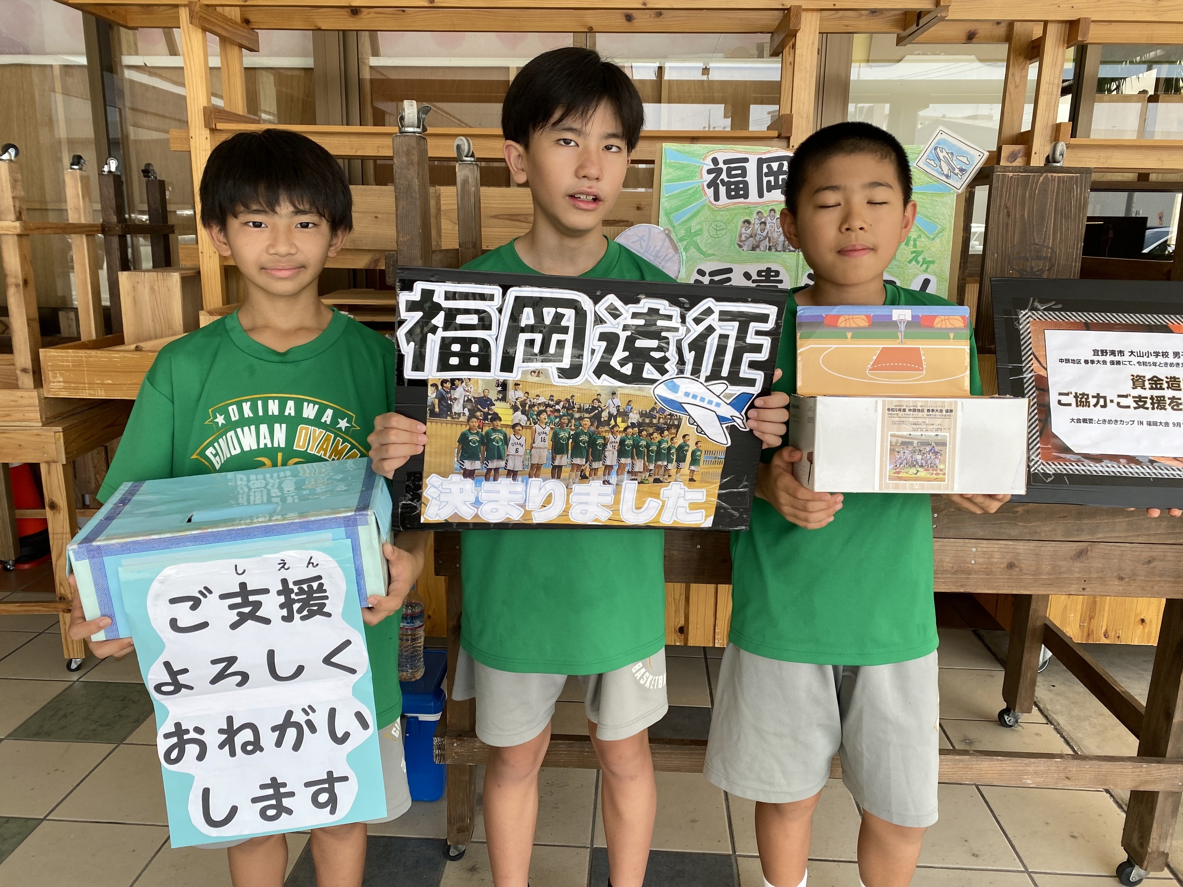 今日のスケジュールは…、9時15分に体育館に集合。10時から12時まで2箇所で街頭募金!Aチームはドン・キホーテ宜野湾店で、Bチームはハッピーモア市場で分かれて行ってきました!大きな声での声掛け。アメリカ人のお客さんには練習した英語で呼びかけました。地元とあって「応援してるよ!」「孫も大山小だったのよ〜」「大山小、卒業生ッス!」と嬉しい声かけもありました。皆様ご協力ありがとうございました!Aチームはマックでお昼ご飯、Bチームは市場の食堂で腹ごしらえしてから、今度はそのまま宜野湾市民体育館で4時まで練習してきました。沖縄そば、中味汁(モツ汁)を食べる渋いヤツら子どもたちも父母もみんな頑張っています。県大会まであと4日。体調管理に気を付けながら万全で挑みます!