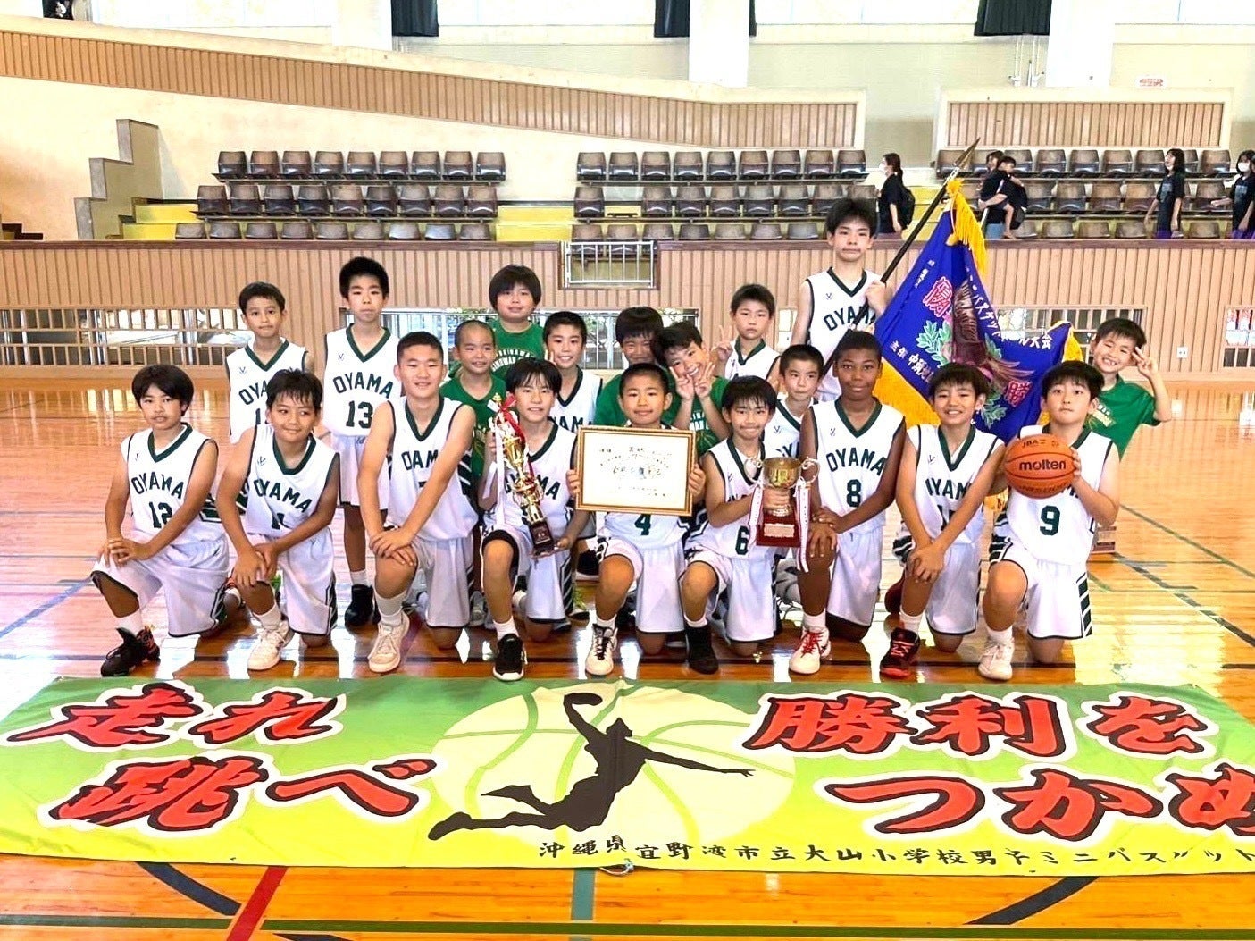 私たち大山小学校男子ミニバスケットボール部は、昨年宜野湾市5年以下大会優勝、今年南ブロック新人大会優勝、沖縄県中頭地区大会優勝という快挙を成し遂げ、9月に行われる福岡での大会に出場が決定しました。