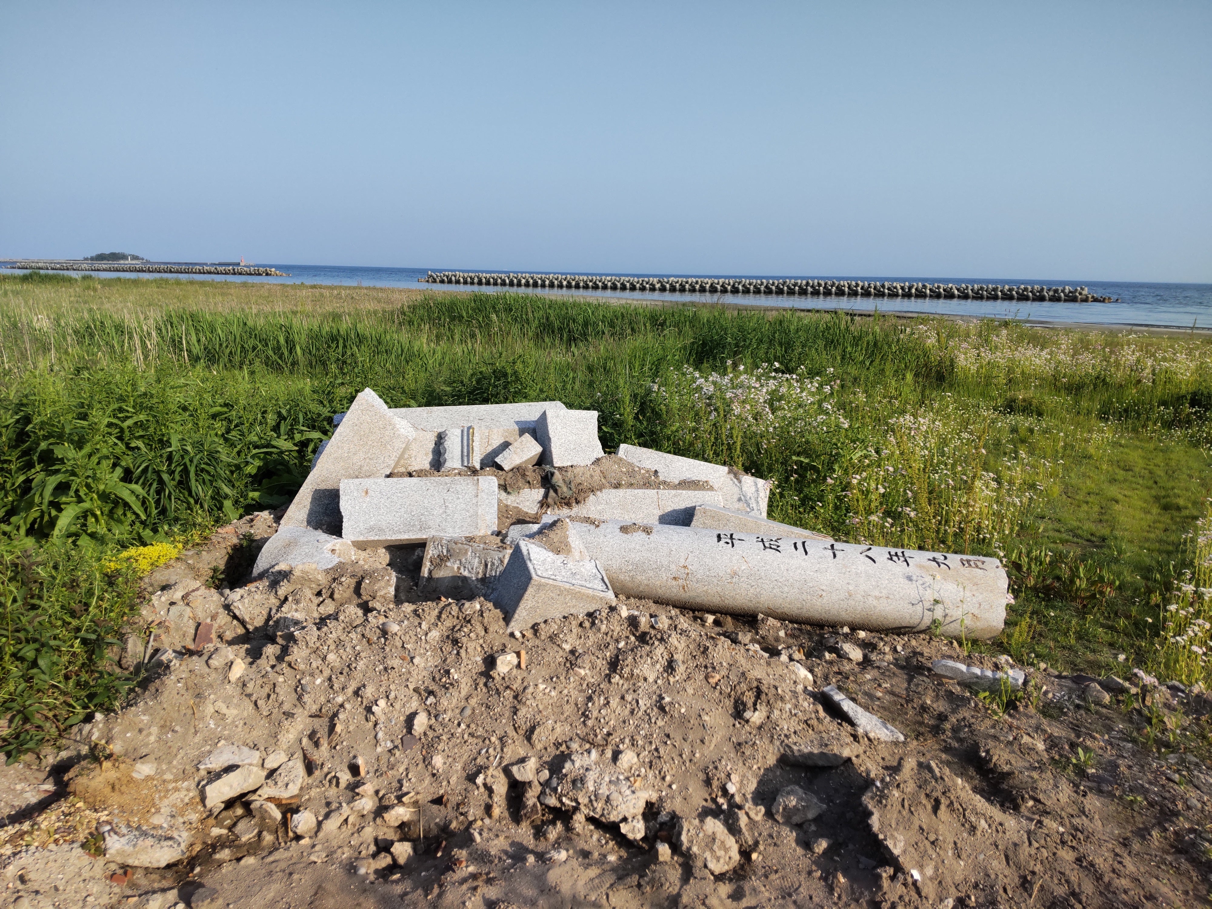 写真は初日に見た、被害の酷かった珠洲市正院町の浜辺に建っていた壊れた鳥居です。